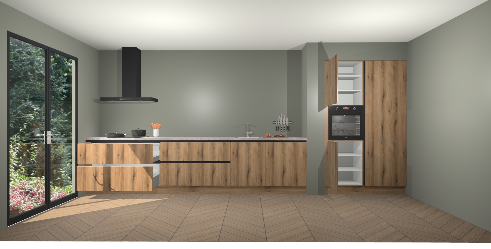 Maak kennis met de Goud Eiken greeploze keuken Calgary - de perfecte aanvulling voor uw moderne keuken! Ervaar tijdloos design, elegantie en een chique uitstraling met onze handgrepen, soft-close deuren en veel opbergruimte. Dit alles wordt aangeboden tegen een vaste lage prijs voor ongeëvenaarde Duitse keukenkwaliteit!