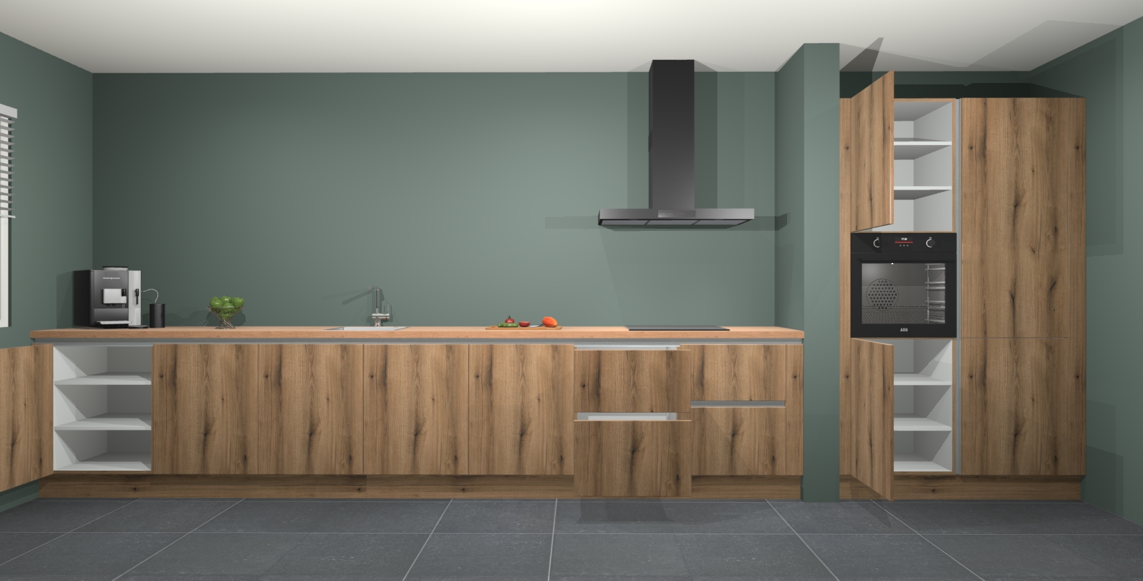 Maak kennis met de Goud eiken keuken Elzas - de perfecte aanvulling voor uw moderne keuken! Ervaar tijdloos design, elegantie en een chique uitstraling met onze handgrepen, soft-close deuren en veel opbergruimte. Dit alles wordt aangeboden tegen een vaste lage prijs voor ongeëvenaarde Duitse keukenkwaliteit!