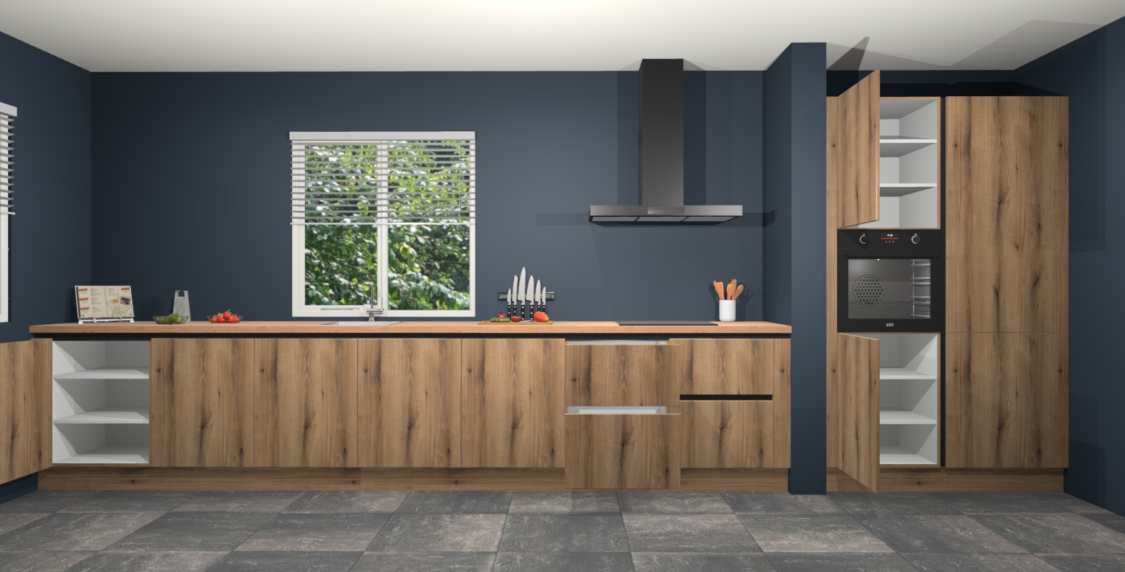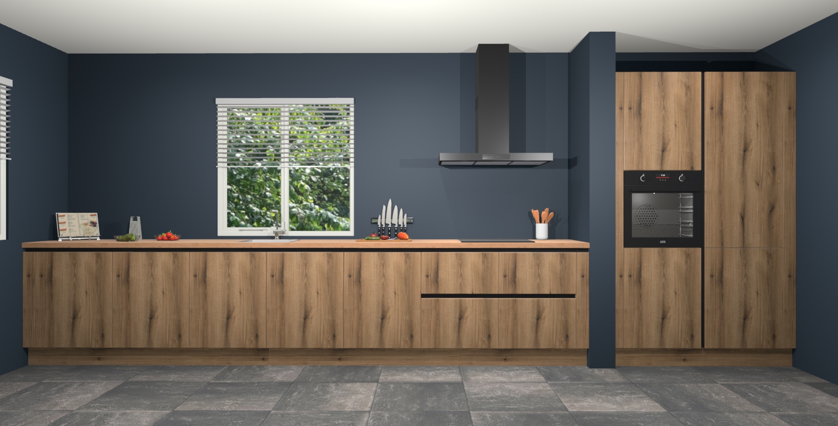 Maak kennis met de Goud eiken keuken Elzas - de perfecte aanvulling voor uw moderne keuken! Ervaar tijdloos design, elegantie en een chique uitstraling met onze handgrepen, soft-close deuren en veel opbergruimte. Dit alles wordt aangeboden tegen een vaste lage prijs voor ongeëvenaarde Duitse keukenkwaliteit!