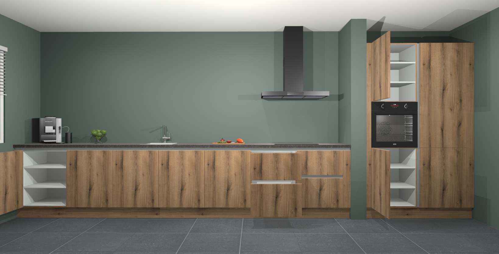 Maak kennis met de Goud eiken keuken Elzas - de perfecte aanvulling voor uw moderne keuken! Ervaar tijdloos design, elegantie en een chique uitstraling met onze handgrepen, soft-close deuren en veel opbergruimte. Dit alles wordt aangeboden tegen een vaste lage prijs voor ongeëvenaarde Duitse keukenkwaliteit!