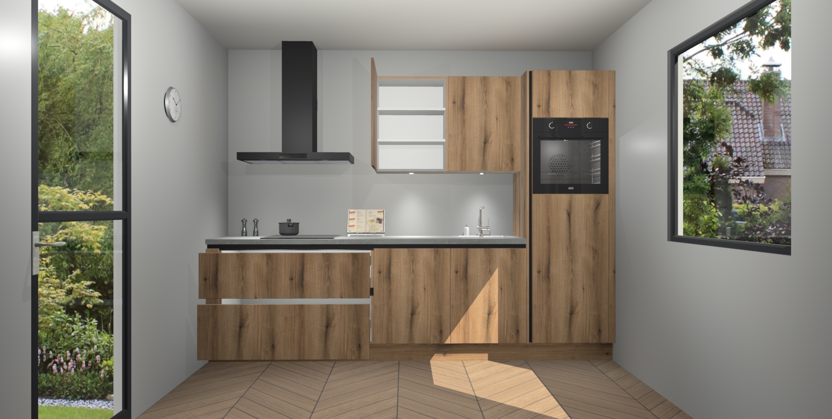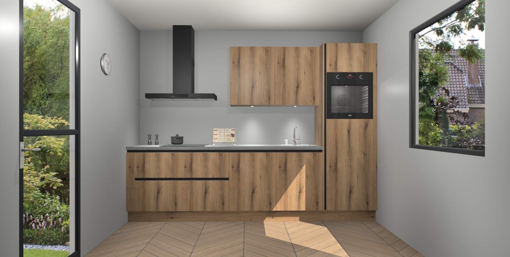 Deze Goud Eiken greeploze keuken van topklasse is ongeëvenaard mooi en is meer dan alleen een lust voor het oog. Hij bevat ook alle nieuwste functies die u nodig hebt om maaltijden te bereiden en te entertainen als een pro. Onze inbouwapparaten zijn handig en geraffineerd en dankzij onze vijfsterrenfuncties maakt u met gemak uw favoriete gerechten klaar. Bovendien zijn de maaltijden snel klaar dankzij ons snelle afleversysteem, waardoor u tijd bespaart zonder aan kwaliteit of smaak in te boeten!