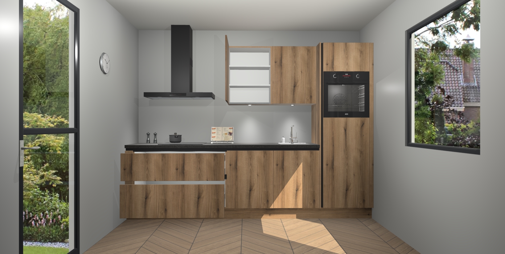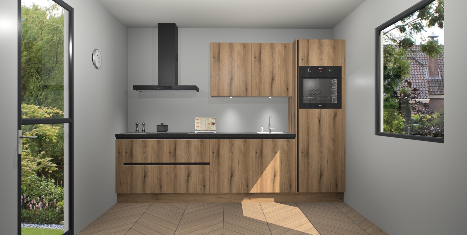 Deze Goud Eiken greeploze keuken van topklasse is ongeëvenaard mooi en is meer dan alleen een lust voor het oog. Hij bevat ook alle nieuwste functies die u nodig hebt om maaltijden te bereiden en te entertainen als een pro. Onze inbouwapparaten zijn handig en geraffineerd en dankzij onze vijfsterrenfuncties maakt u met gemak uw favoriete gerechten klaar. Bovendien zijn de maaltijden snel klaar dankzij ons snelle afleversysteem, waardoor u tijd bespaart zonder aan kwaliteit of smaak in te boeten!