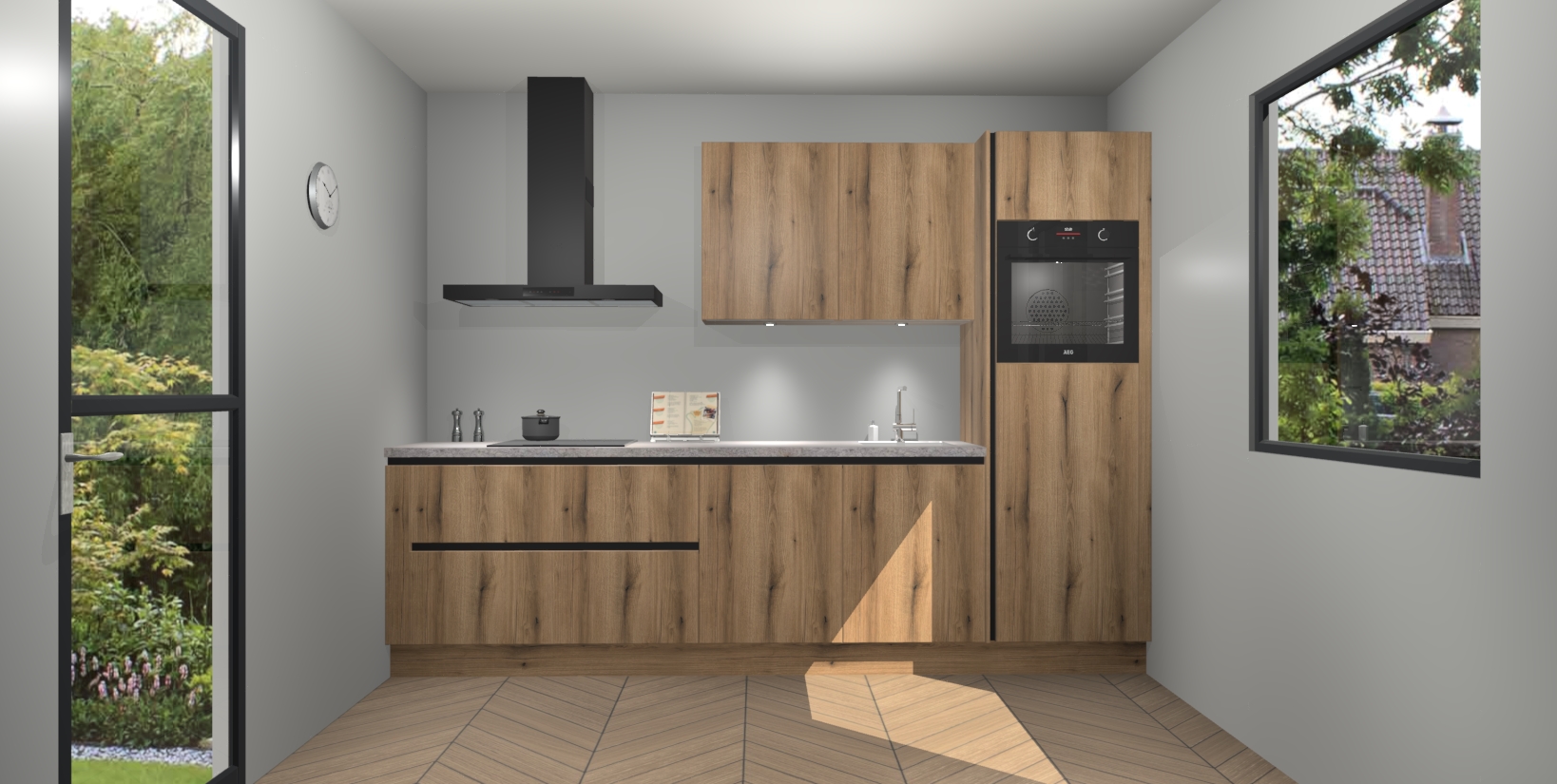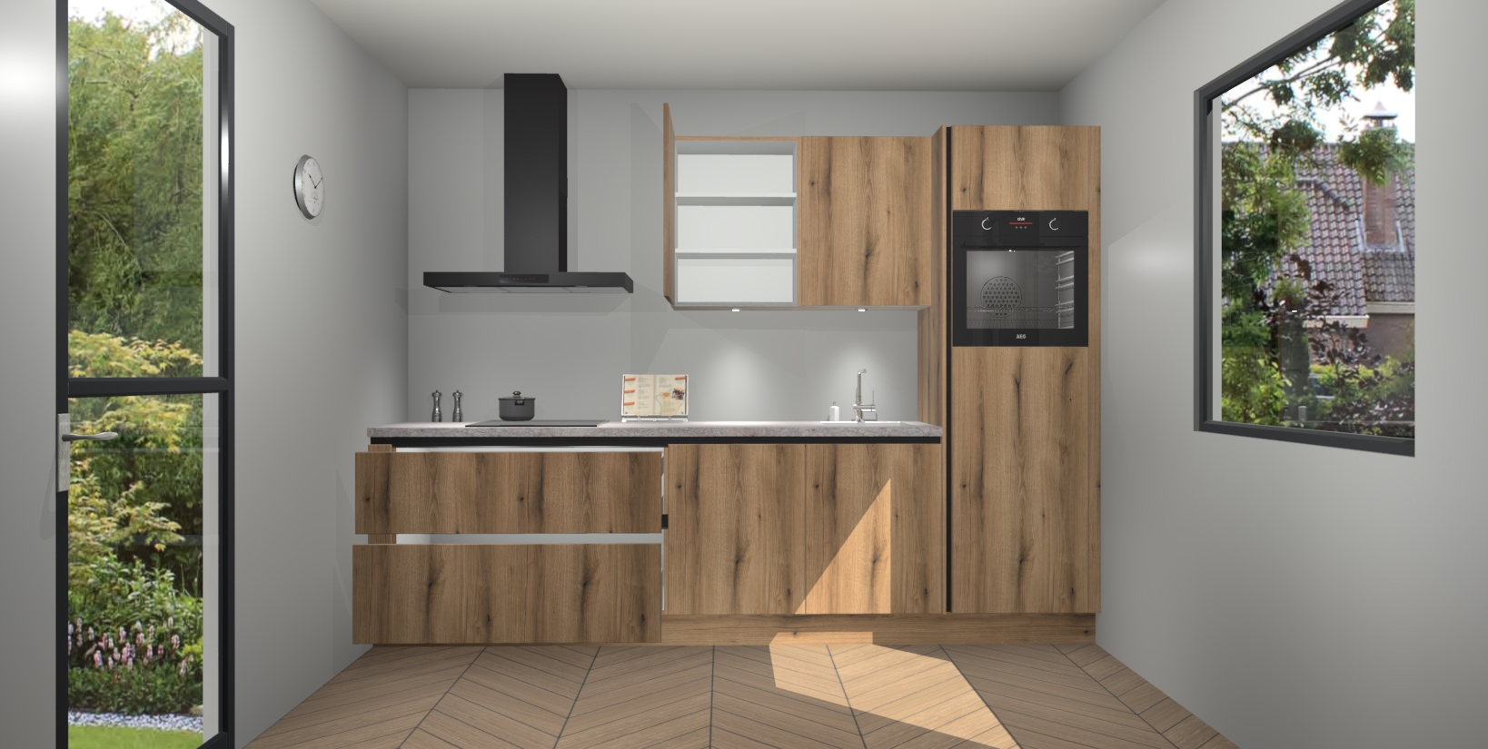 Deze Goud Eiken greeploze keuken van topklasse is ongeëvenaard mooi en is meer dan alleen een lust voor het oog. Hij bevat ook alle nieuwste functies die u nodig hebt om maaltijden te bereiden en te entertainen als een pro. Onze inbouwapparaten zijn handig en geraffineerd en dankzij onze vijfsterrenfuncties maakt u met gemak uw favoriete gerechten klaar. Bovendien zijn de maaltijden snel klaar dankzij ons snelle afleversysteem, waardoor u tijd bespaart zonder aan kwaliteit of smaak in te boeten!