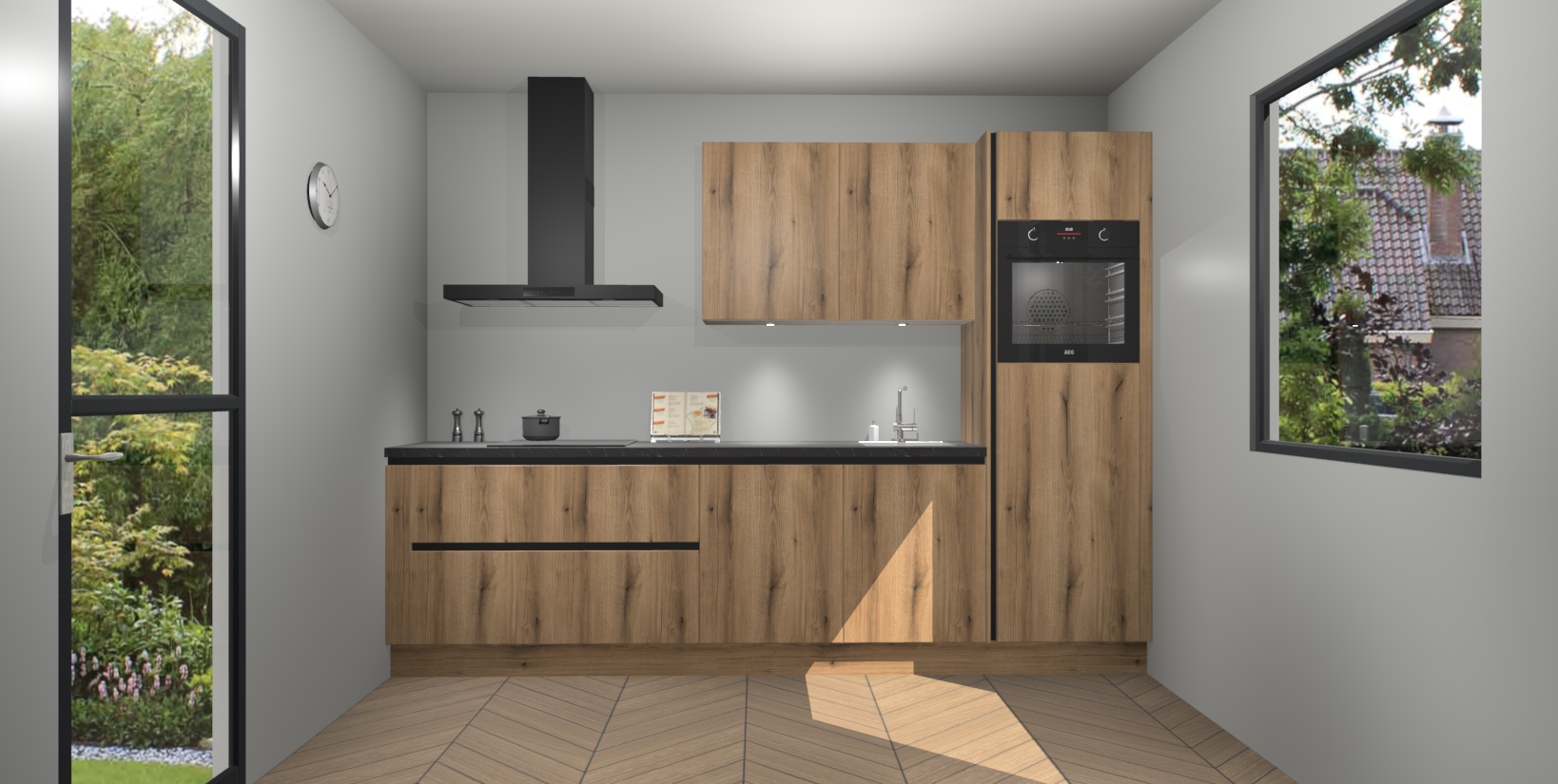 Deze Goud Eiken greeploze keuken van topklasse is ongeëvenaard mooi en is meer dan alleen een lust voor het oog. Hij bevat ook alle nieuwste functies die u nodig hebt om maaltijden te bereiden en te entertainen als een pro. Onze inbouwapparaten zijn handig en geraffineerd en dankzij onze vijfsterrenfuncties maakt u met gemak uw favoriete gerechten klaar. Bovendien zijn de maaltijden snel klaar dankzij ons snelle afleversysteem, waardoor u tijd bespaart zonder aan kwaliteit of smaak in te boeten!