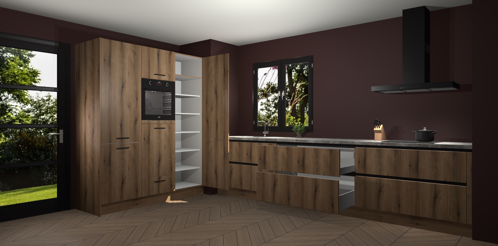 Maak van uw keuken een plek waar u trots op bent - trakteer uzelf vandaag nog op de kwaliteit en elegantie van de Goud Eiken greeploze keuken Taipei !