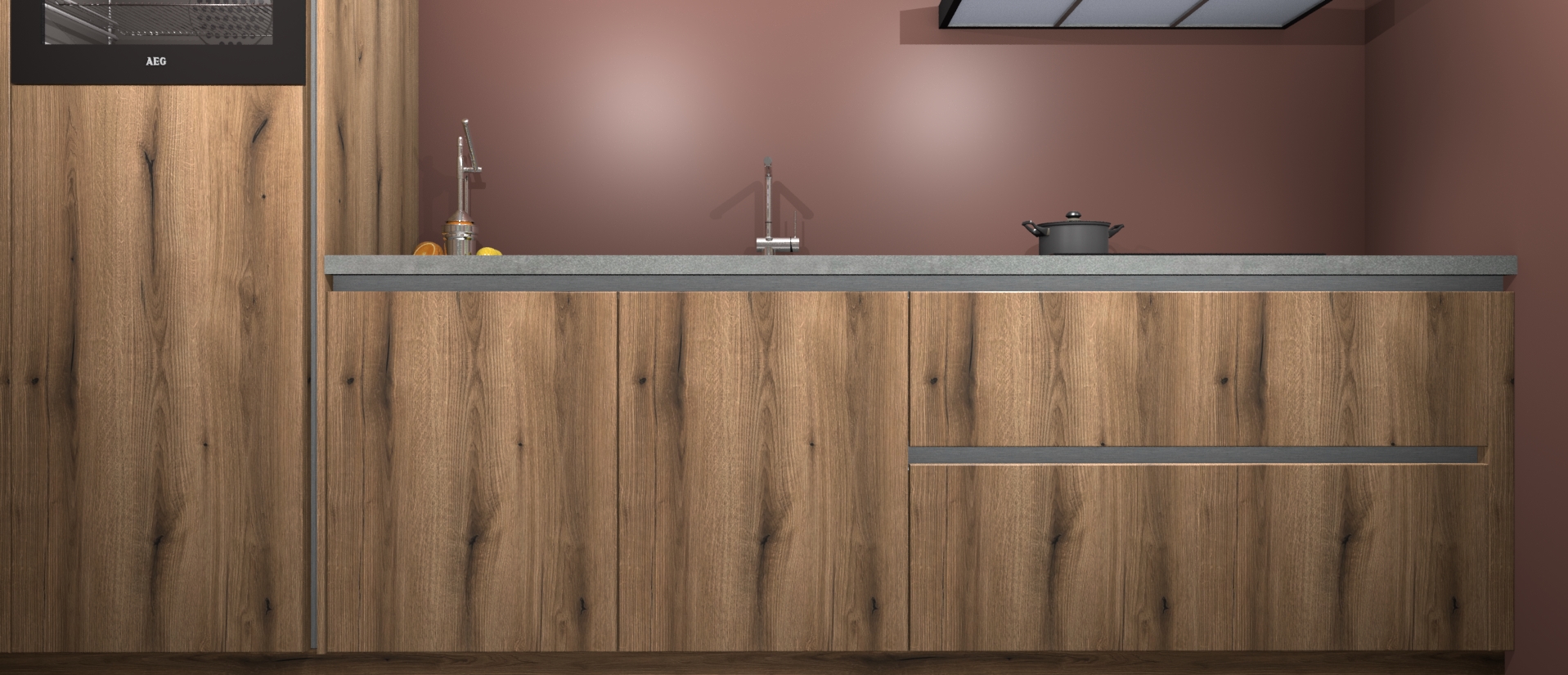 Maak kennis met de gloednieuwe Goud Eiken keuken Tokelau! Met zijn chique, moderne uitstraling is dit product perfect voor iedereen die een warm en toch strak design voor zijn huis wil.