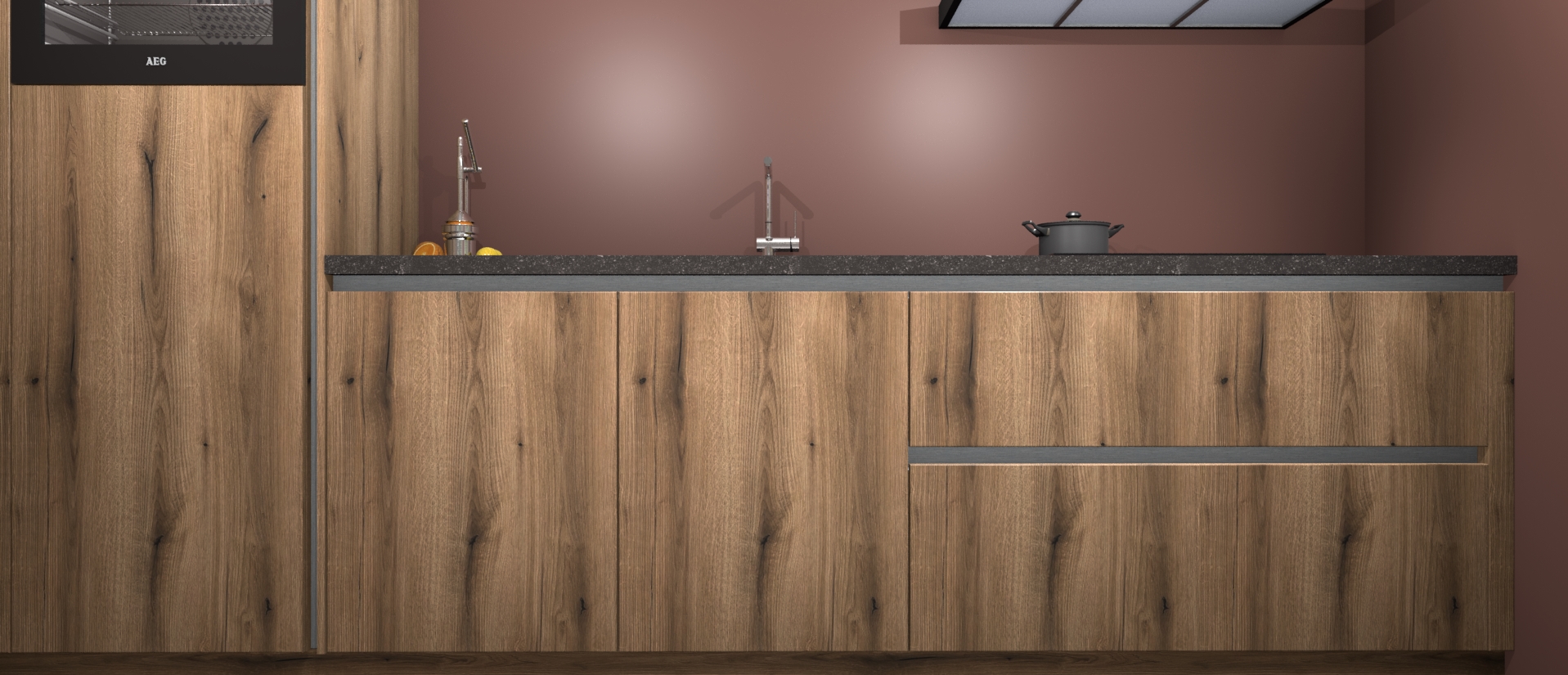 Maak kennis met de gloednieuwe Goud Eiken keuken Tokelau! Met zijn chique, moderne uitstraling is dit product perfect voor iedereen die een warm en toch strak design voor zijn huis wil.