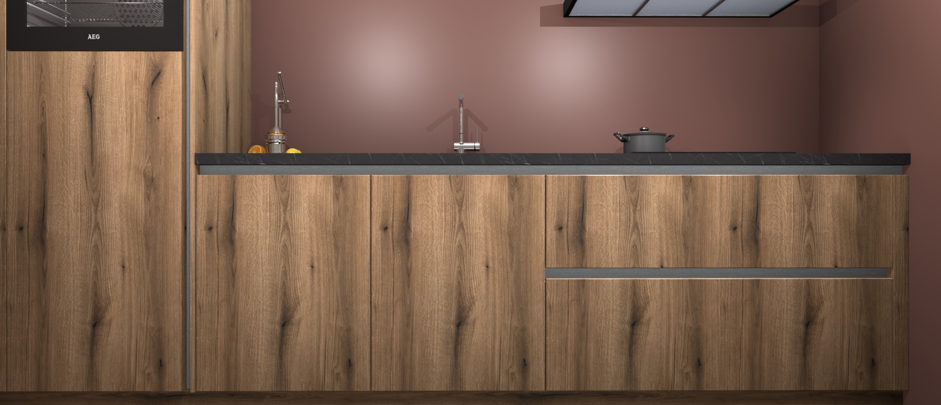 Maak kennis met de gloednieuwe Goud Eiken keuken Tokelau! Met zijn chique, moderne uitstraling is dit product perfect voor iedereen die een warm en toch strak design voor zijn huis wil.