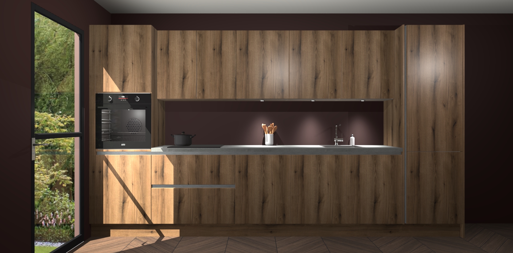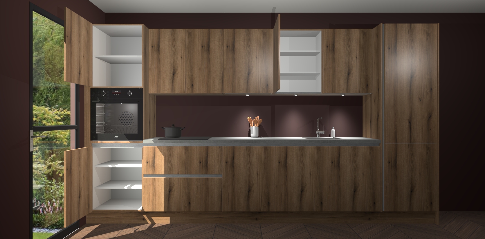 Dit is de perfecte keuken voor wie op zoek is naar een luxueuze stijl zonder zijn portemonnee te legen! Het chique ontwerp van de goud eiken greeploze keuken Wels voegt dat vleugje verfijning toe aan elk huis. Het gemak van voorgemonteerde kasten bespaart u talloze uren tijd en energie, zodat u veel sneller dan verwacht kunt beginnen te genieten van uw prachtige nieuwe keuken. Bovendien bedraagt de levertijd slechts 7 weken.