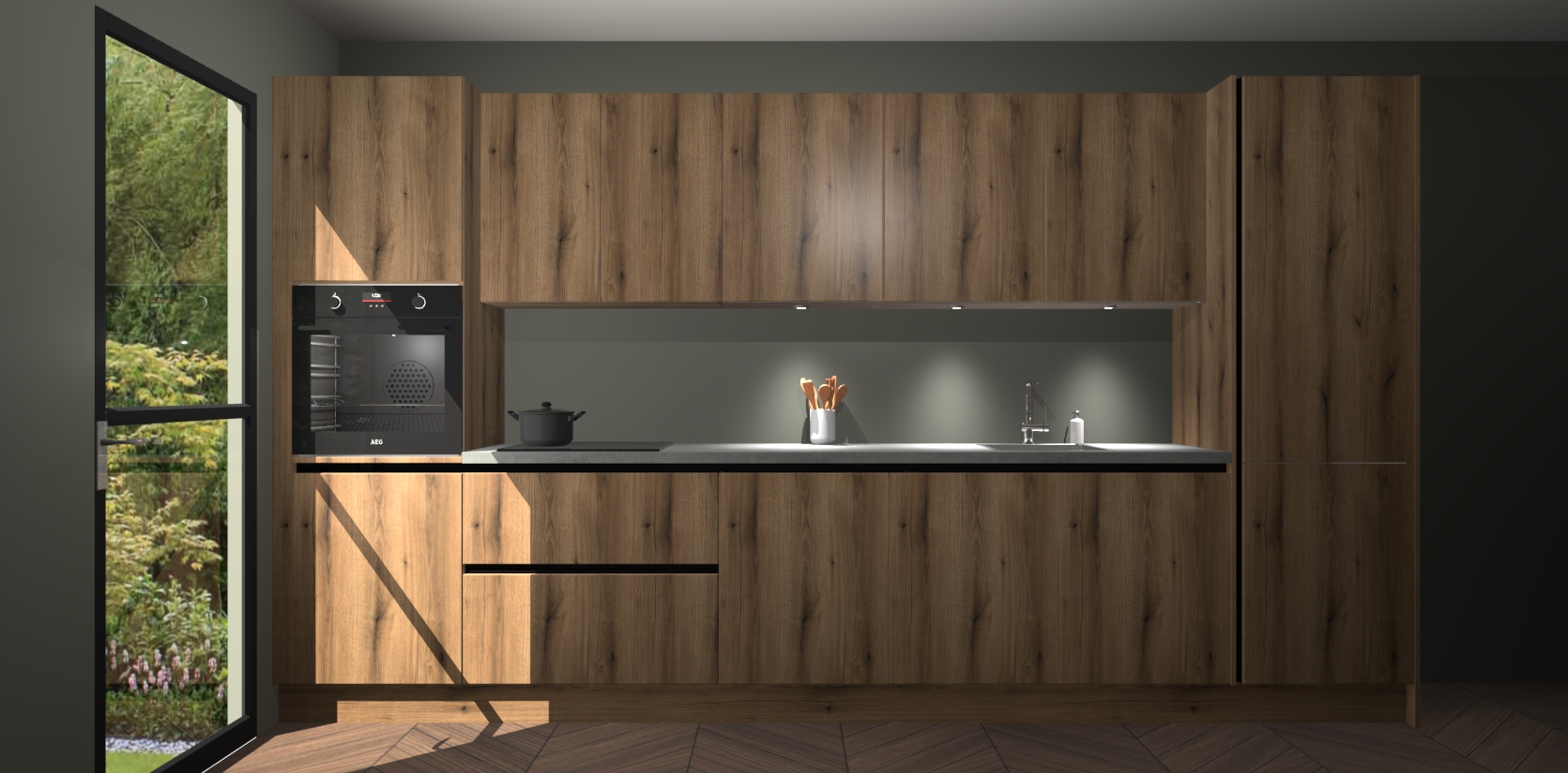 Dit is de perfecte keuken voor wie op zoek is naar een luxueuze stijl zonder zijn portemonnee te legen! Het chique ontwerp van de goud eiken greeploze keuken Wels voegt dat vleugje verfijning toe aan elk huis. Het gemak van voorgemonteerde kasten bespaart u talloze uren tijd en energie, zodat u veel sneller dan verwacht kunt beginnen te genieten van uw prachtige nieuwe keuken. Bovendien bedraagt de levertijd slechts 7 weken.