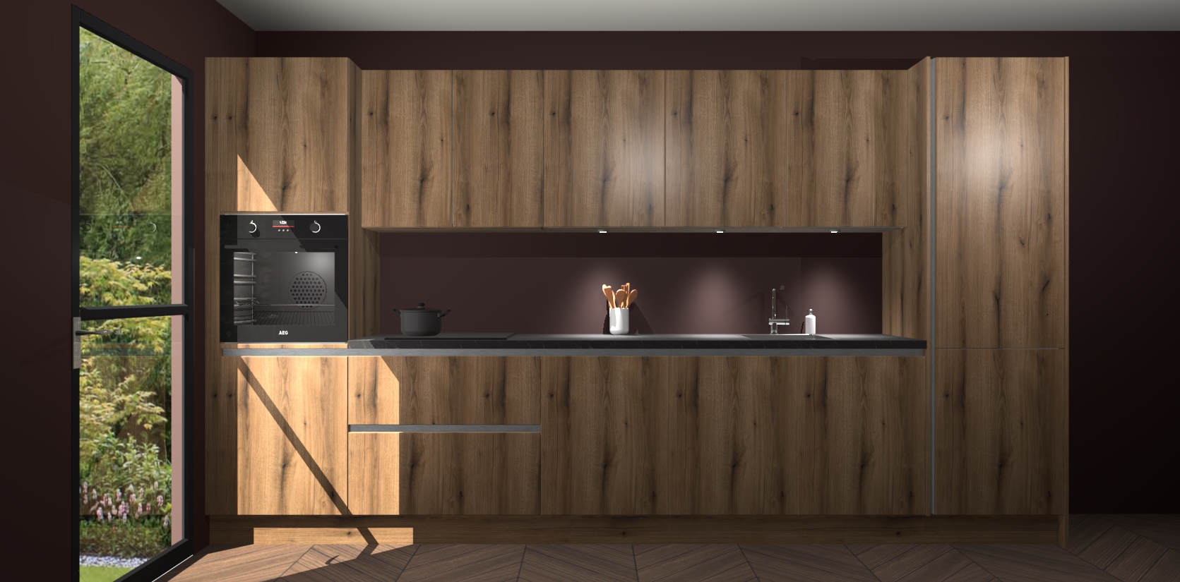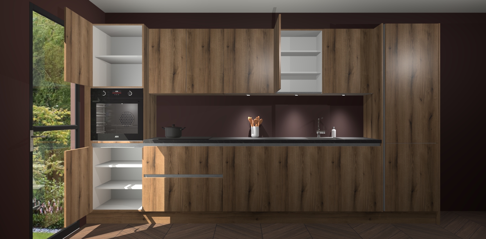 Dit is de perfecte keuken voor wie op zoek is naar een luxueuze stijl zonder zijn portemonnee te legen! Het chique ontwerp van de goud eiken greeploze keuken Wels voegt dat vleugje verfijning toe aan elk huis. Het gemak van voorgemonteerde kasten bespaart u talloze uren tijd en energie, zodat u veel sneller dan verwacht kunt beginnen te genieten van uw prachtige nieuwe keuken. Bovendien bedraagt de levertijd slechts 7 weken.