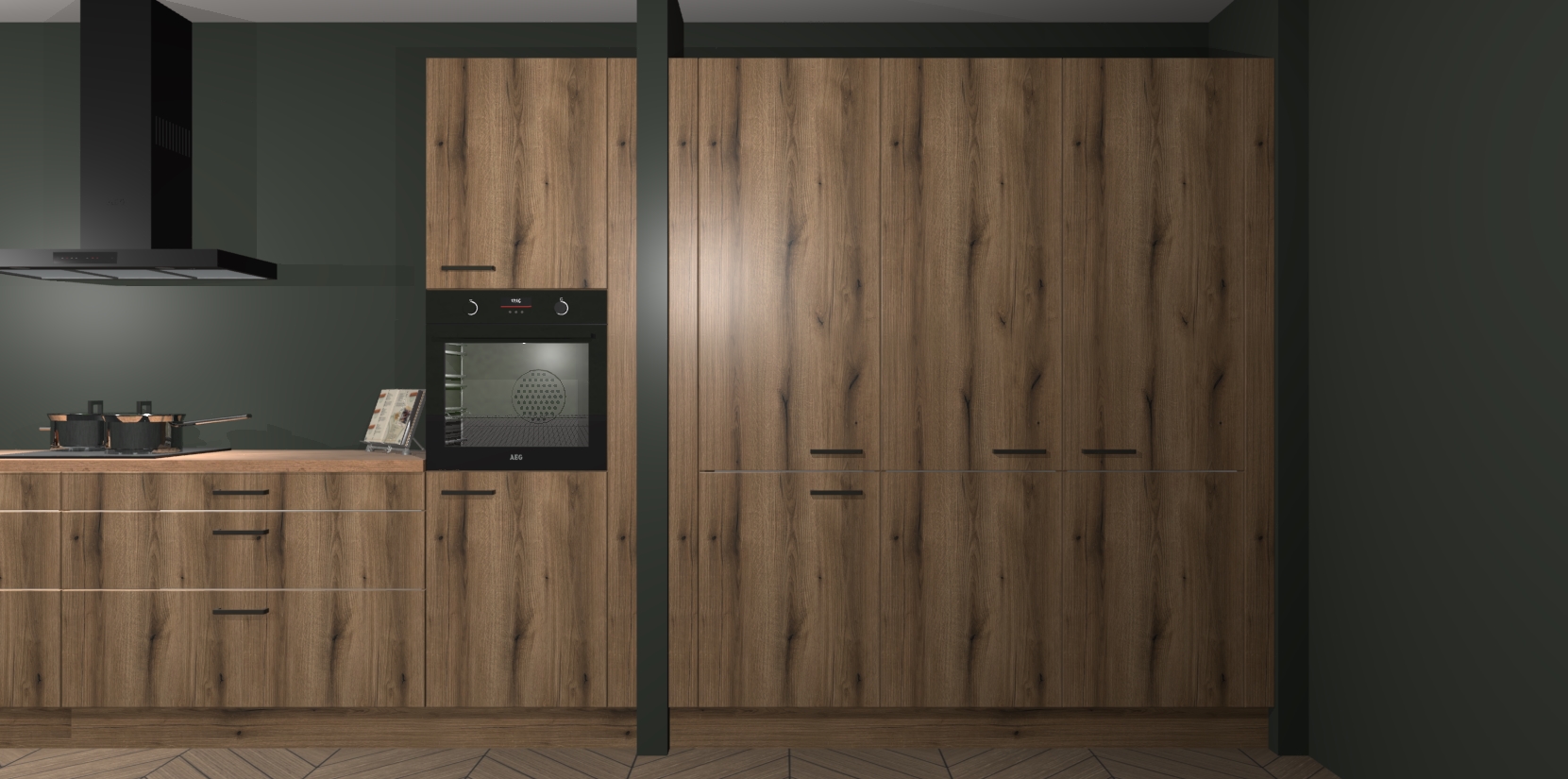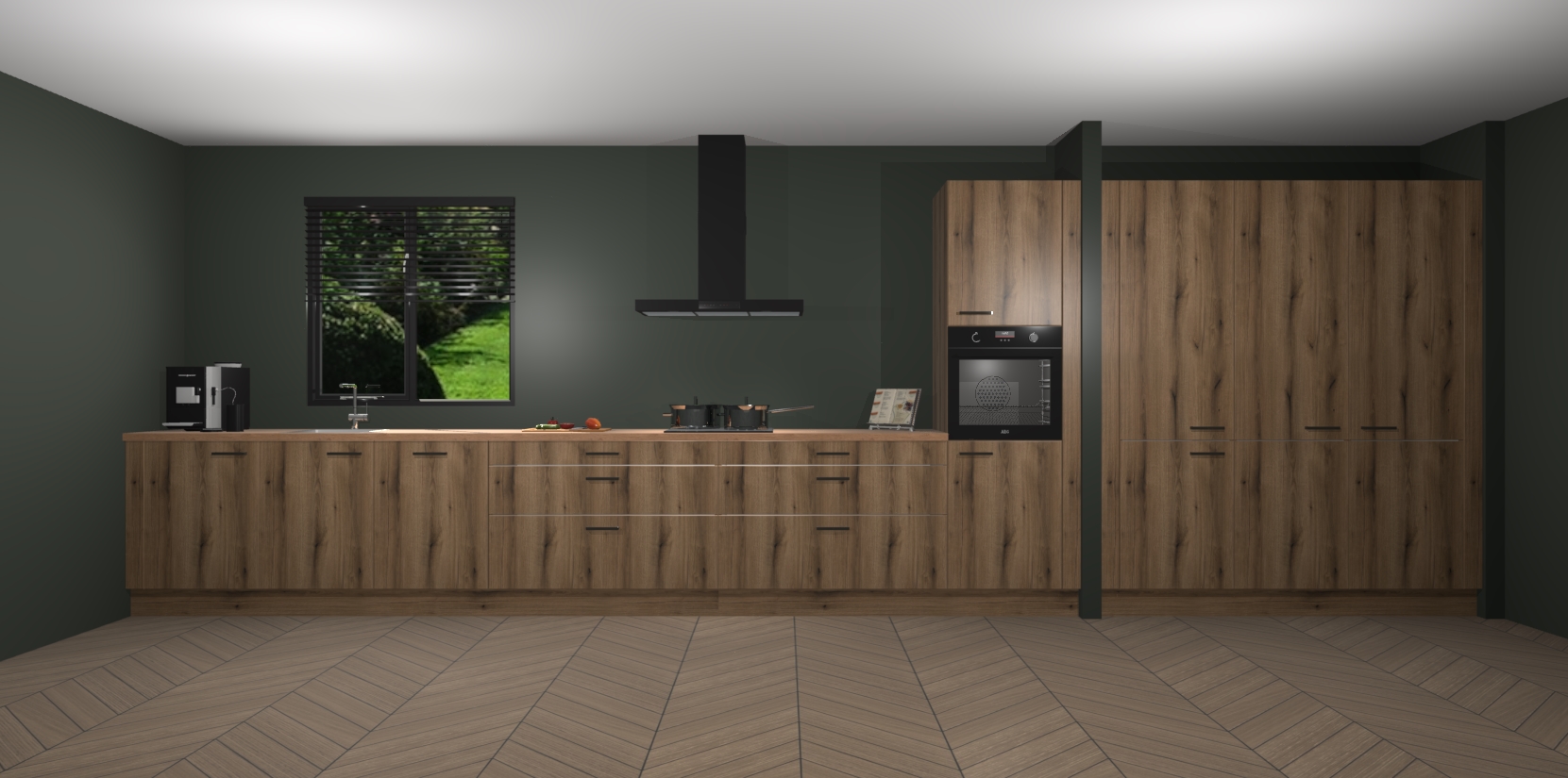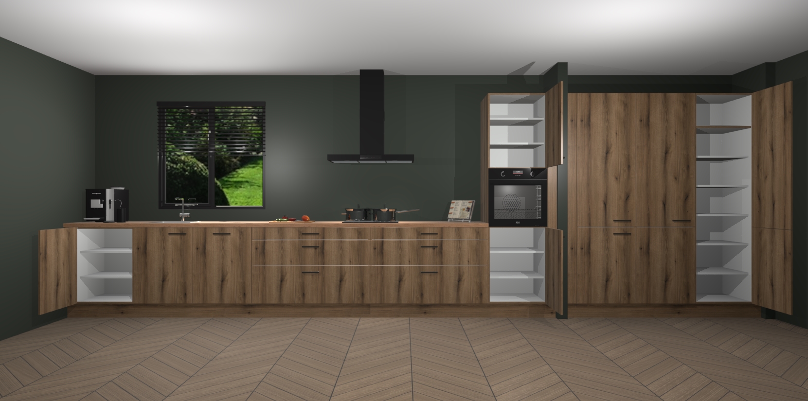Dankzij de afwerking past de Goud Eiken keuken Angola naadloos in elk huis of appartement. De soft-close deuren geven je extra gemoedsrust, want ze sluiten vanzelf en slaan nooit dicht! En alsof dat nog niet genoeg is, worden deze kasten volledig gemonteerd geleverd, dus maak je geen zorgen over eventuele installatieproblemen.