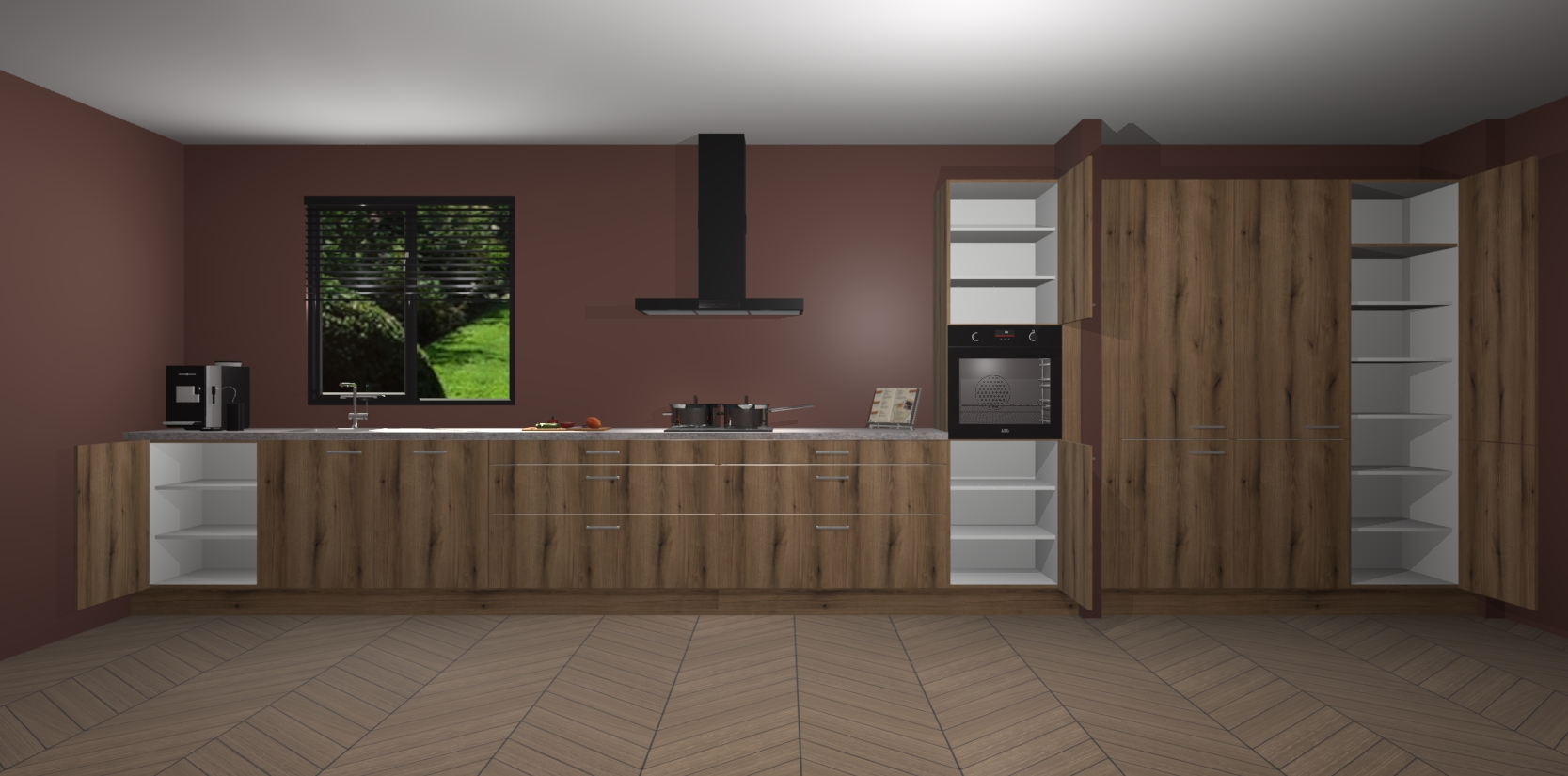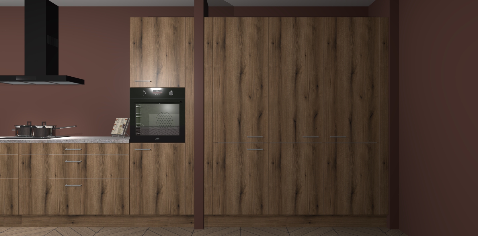 Dankzij de afwerking past de Goud Eiken keuken Angola naadloos in elk huis of appartement. De soft-close deuren geven je extra gemoedsrust, want ze sluiten vanzelf en slaan nooit dicht! En alsof dat nog niet genoeg is, worden deze kasten volledig gemonteerd geleverd, dus maak je geen zorgen over eventuele installatieproblemen.