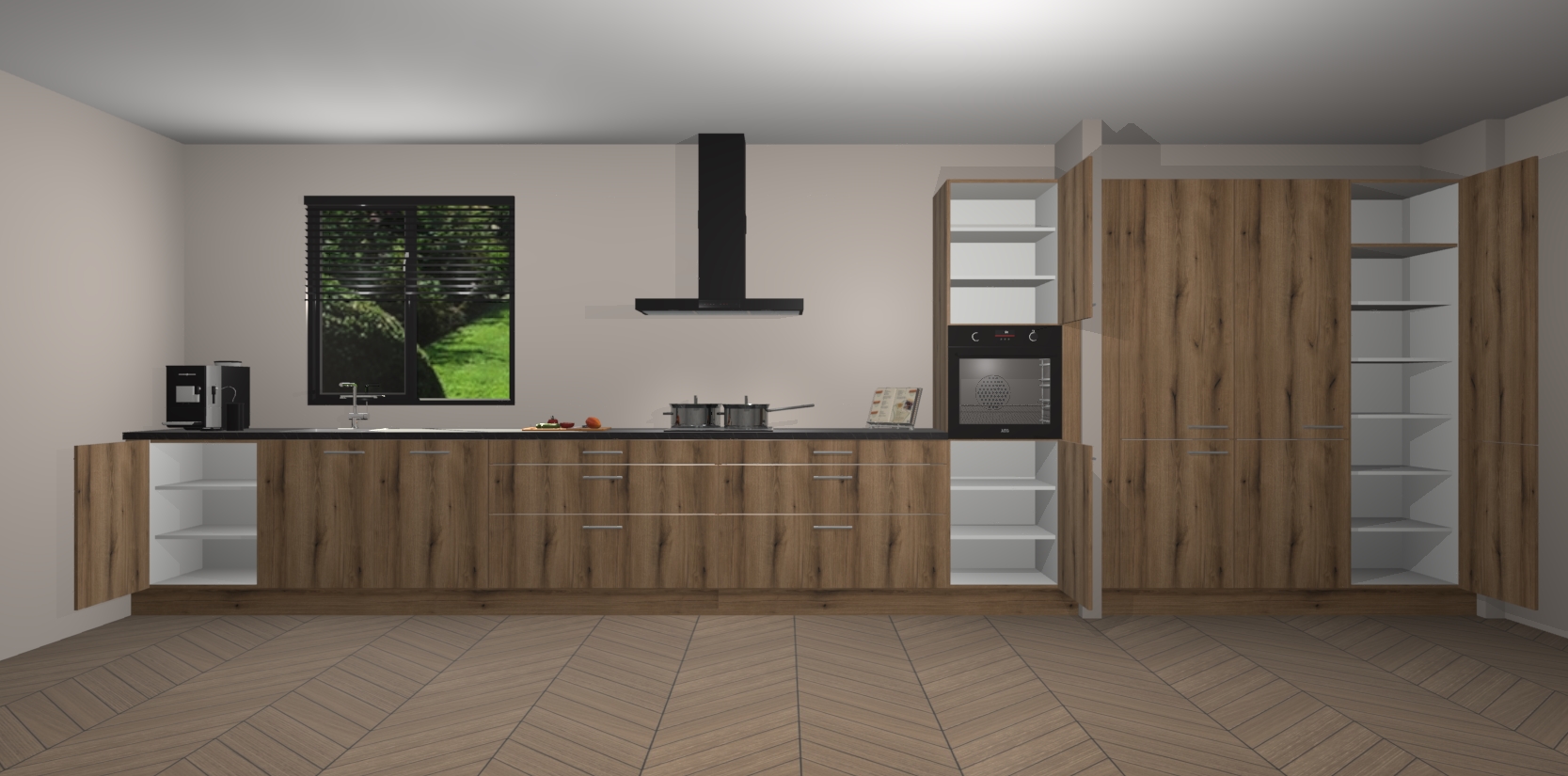 Dankzij de afwerking past de Goud Eiken keuken Angola naadloos in elk huis of appartement. De soft-close deuren geven je extra gemoedsrust, want ze sluiten vanzelf en slaan nooit dicht! En alsof dat nog niet genoeg is, worden deze kasten volledig gemonteerd geleverd, dus maak je geen zorgen over eventuele installatieproblemen.