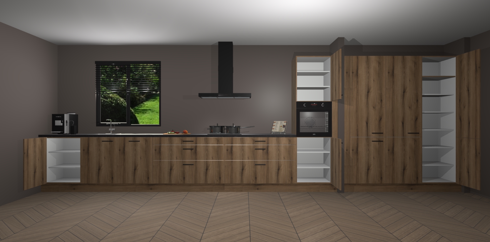 Dankzij de afwerking past de Goud Eiken keuken Angola naadloos in elk huis of appartement. De soft-close deuren geven je extra gemoedsrust, want ze sluiten vanzelf en slaan nooit dicht! En alsof dat nog niet genoeg is, worden deze kasten volledig gemonteerd geleverd, dus maak je geen zorgen over eventuele installatieproblemen.