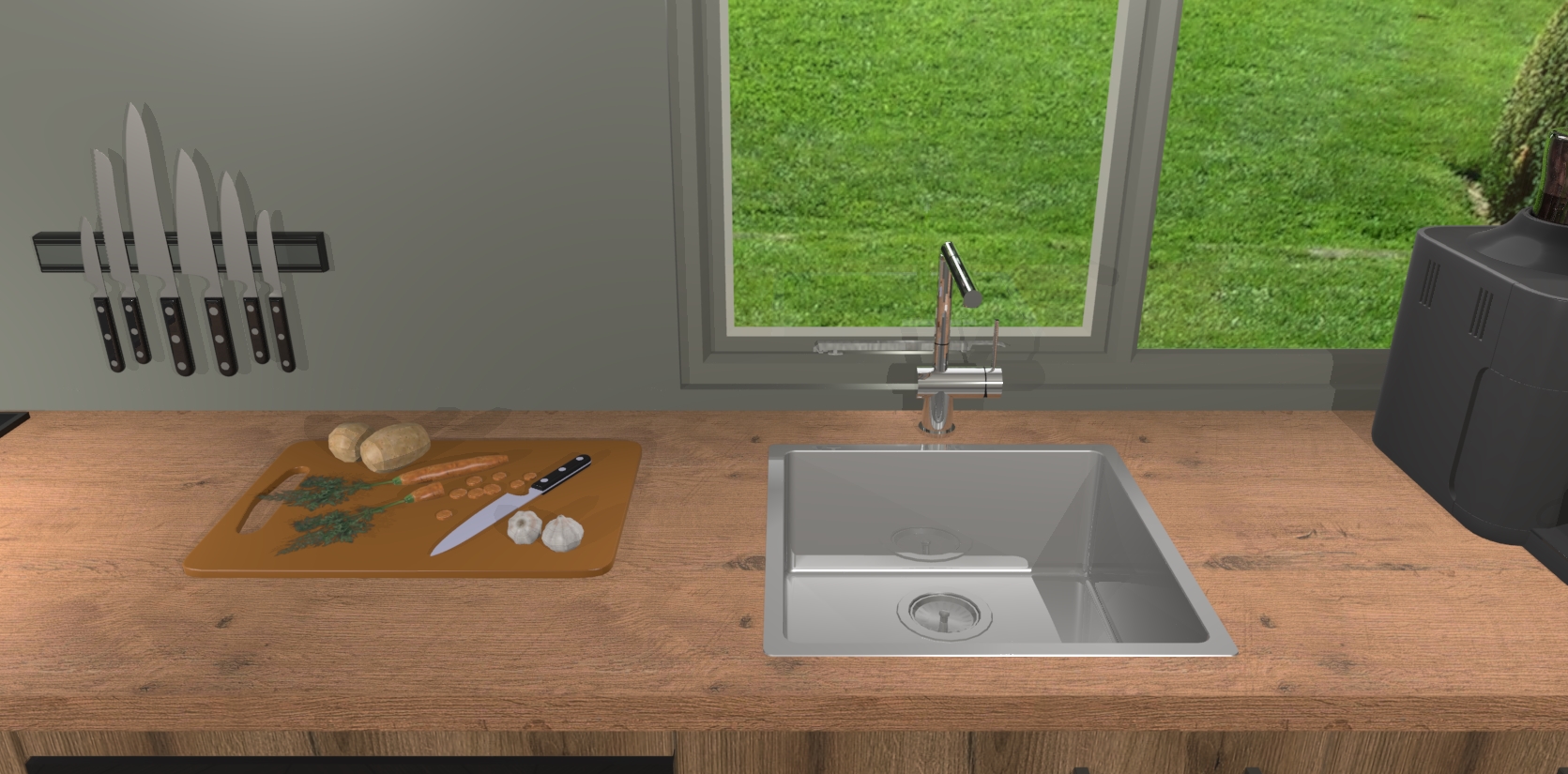 - De spoelbak is nog niet in gevreesd. Dit dient tijdens het werk gedaan te worden