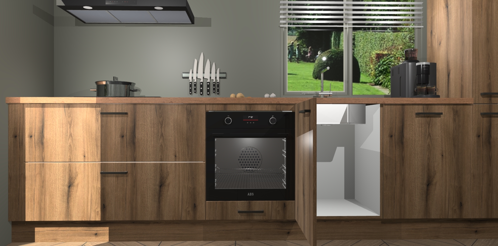 - Ombouw om de oven onder het werkblad te kunnen monteren
