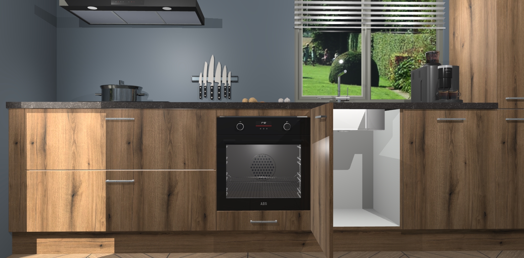 - Ombouw om de oven onder het werkblad te kunnen monteren
