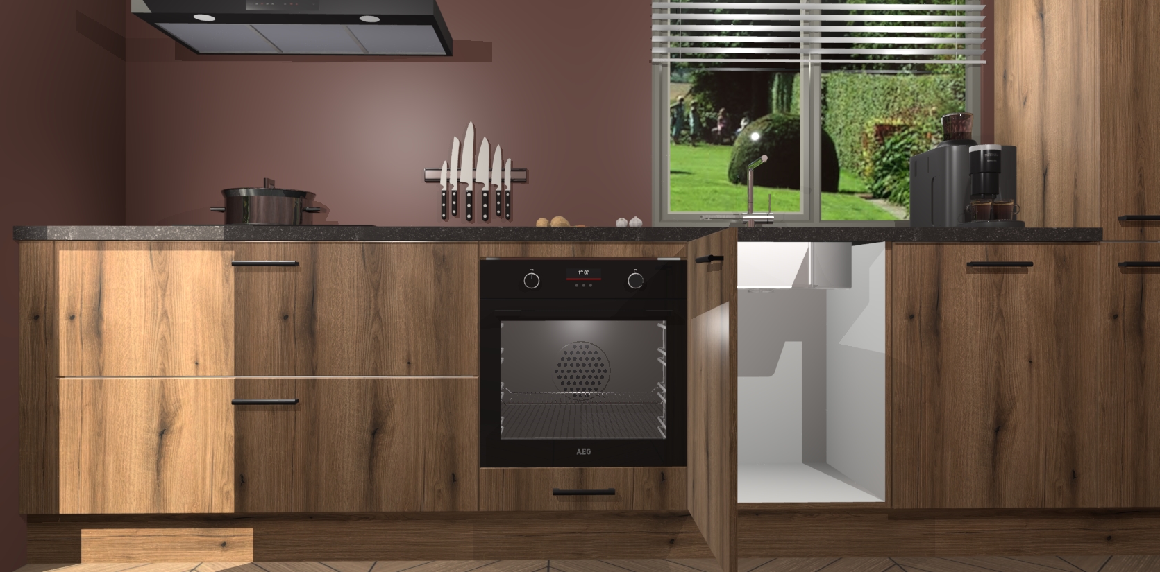 - Ombouw om de oven onder het werkblad te kunnen monteren