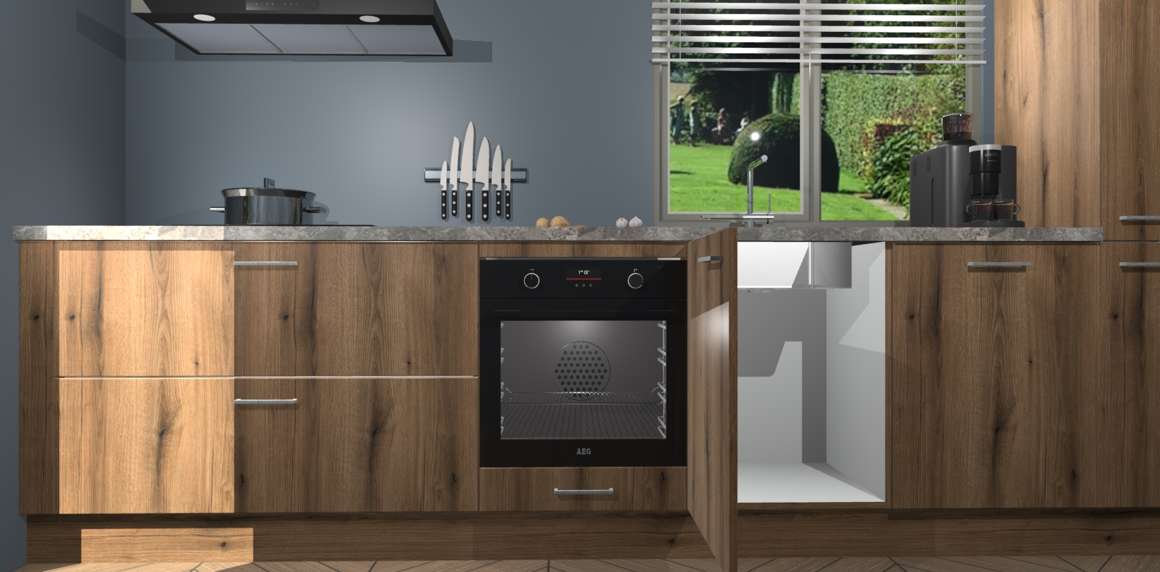 - Ombouw om de oven onder het werkblad te kunnen monteren