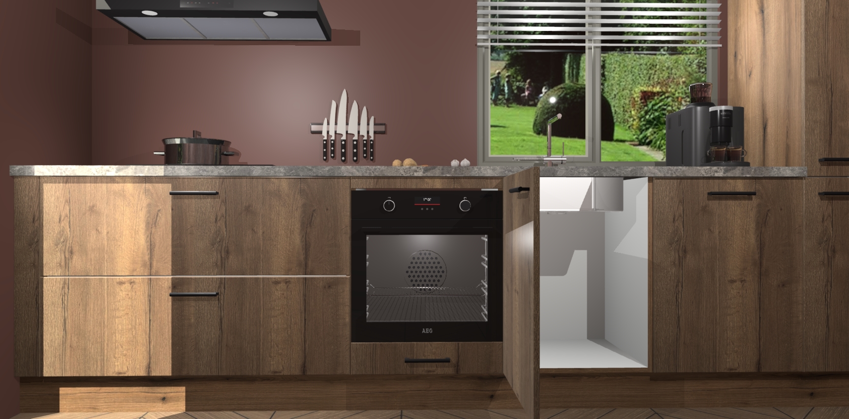- Ombouw om de oven onder het werkblad te kunnen monteren