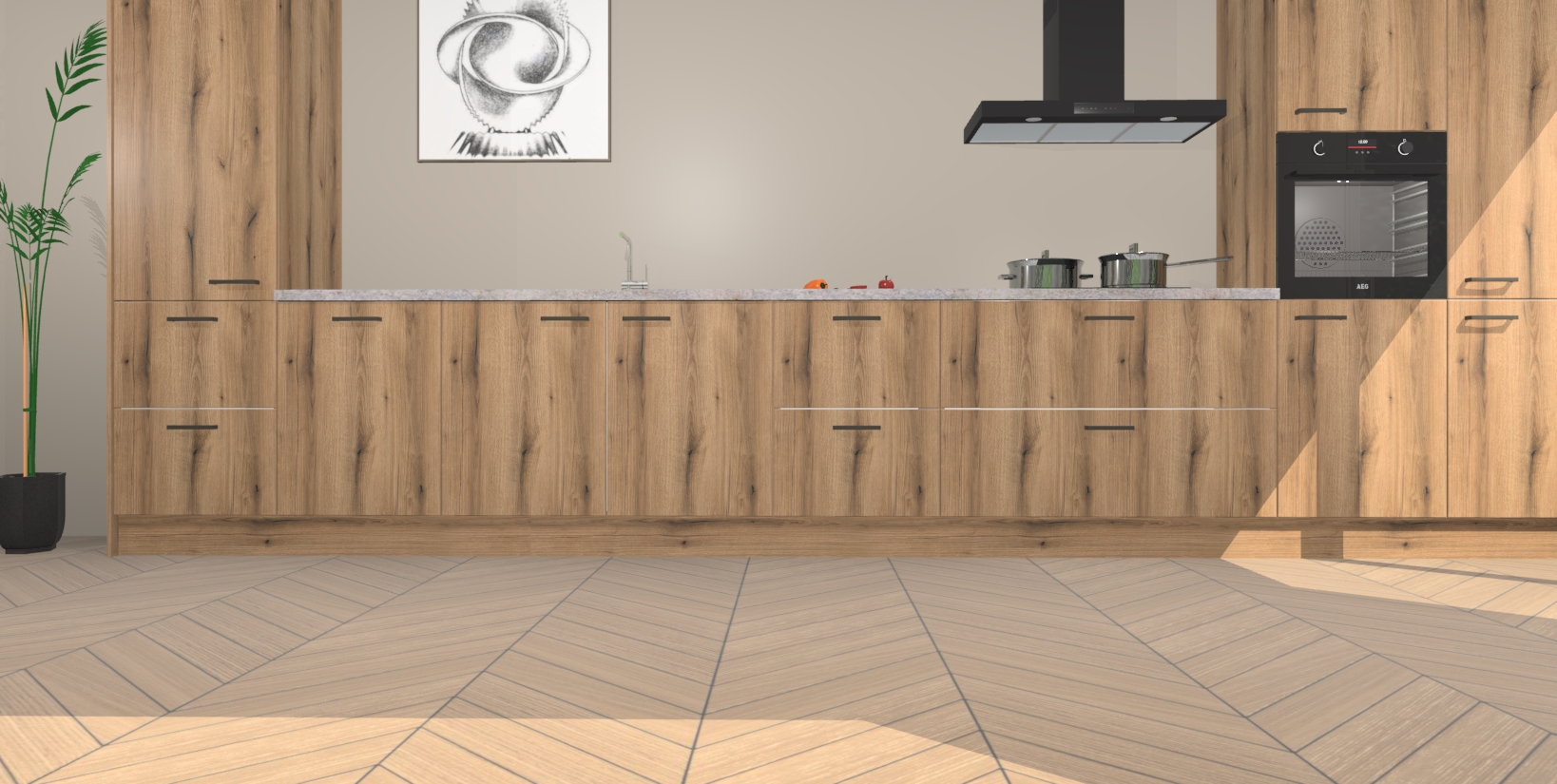 Inclusief plinten, stelpoten en werkblad