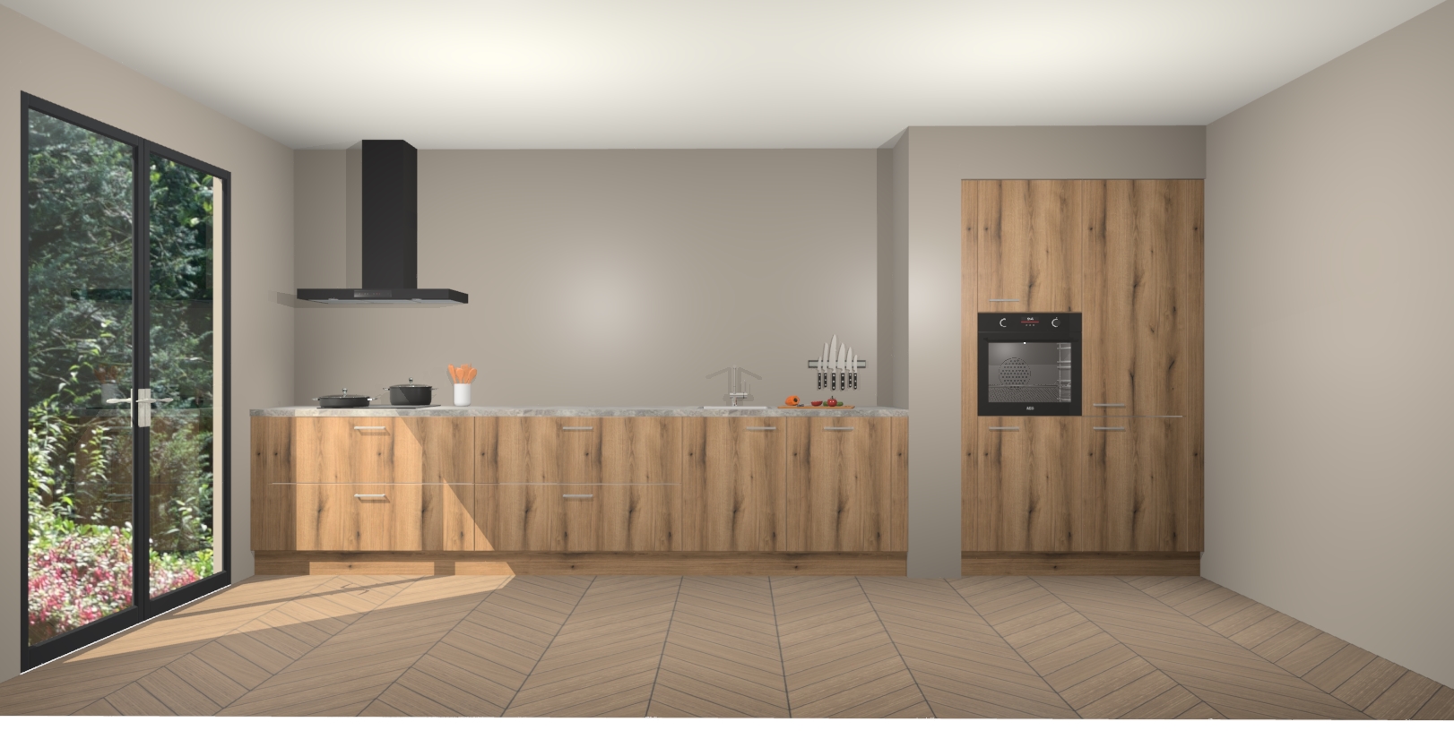 Maak kennis met de Goud Eiken keuken Calgary - de perfecte aanvulling voor uw moderne keuken! Ervaar tijdloos design, elegantie en een chique uitstraling met onze handgrepen, soft-close deuren en veel opbergruimte. Dit alles wordt aangeboden tegen een vaste lage prijs voor ongeëvenaarde Duitse keukenkwaliteit!
