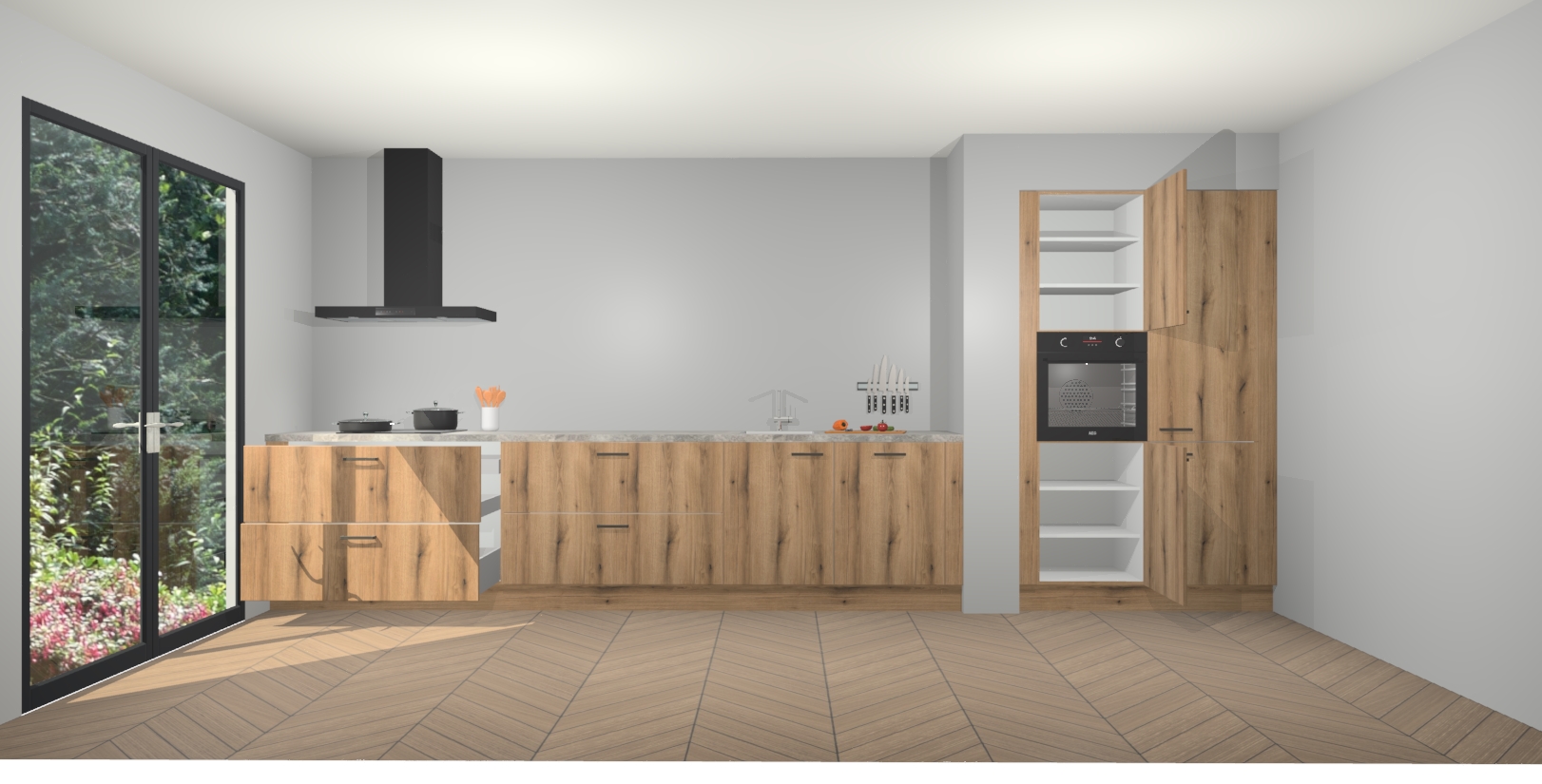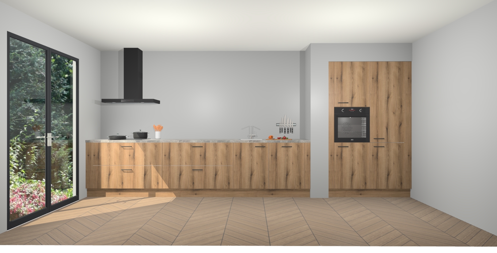 Maak kennis met de Goud Eiken keuken Calgary - de perfecte aanvulling voor uw moderne keuken! Ervaar tijdloos design, elegantie en een chique uitstraling met onze handgrepen, soft-close deuren en veel opbergruimte. Dit alles wordt aangeboden tegen een vaste lage prijs voor ongeëvenaarde Duitse keukenkwaliteit!