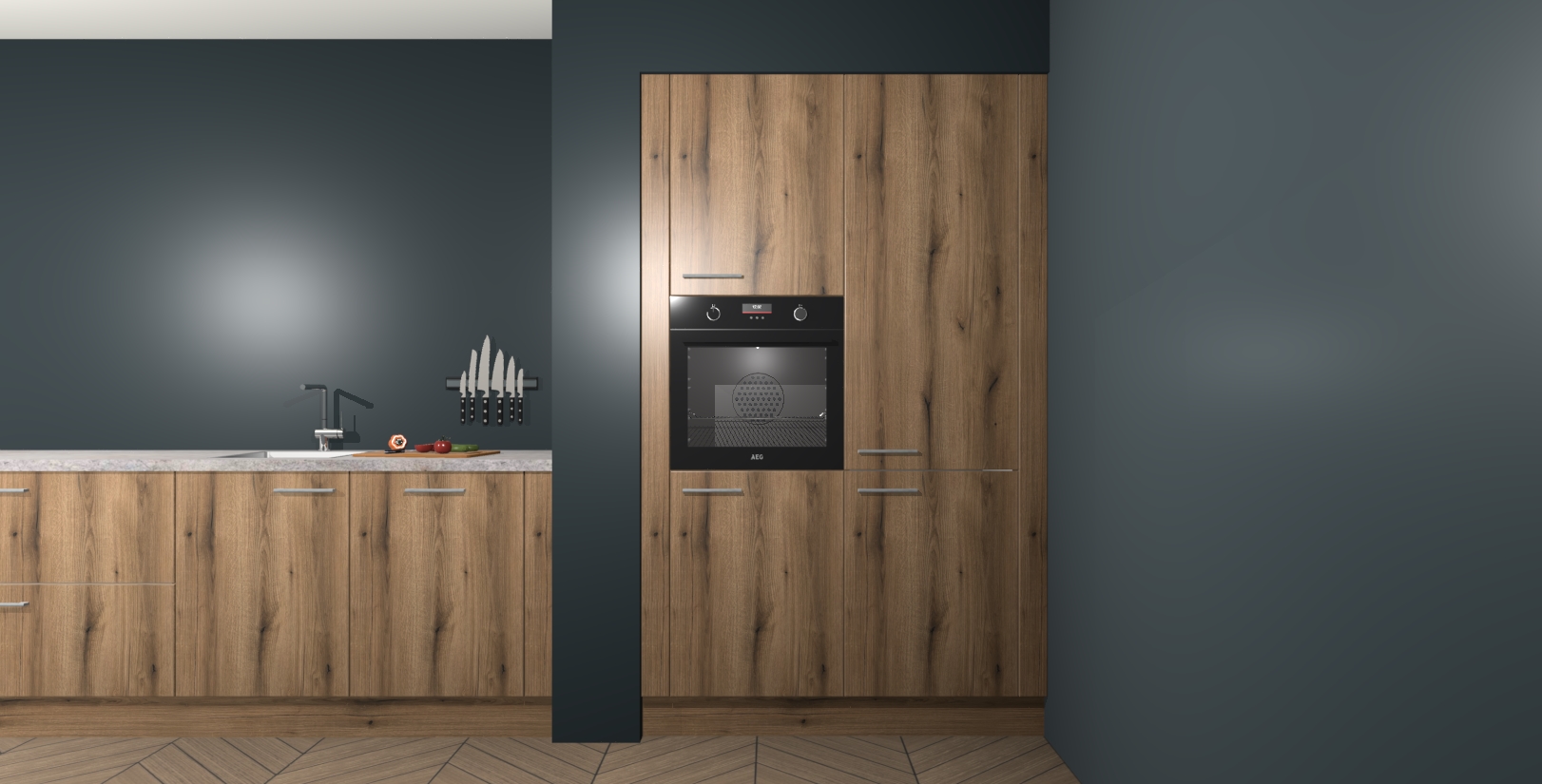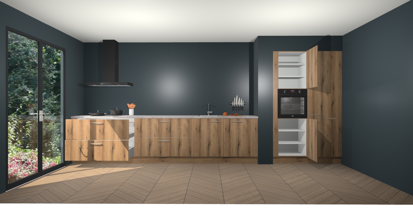 Maak kennis met de Goud Eiken keuken Calgary - de perfecte aanvulling voor uw moderne keuken! Ervaar tijdloos design, elegantie en een chique uitstraling met onze handgrepen, soft-close deuren en veel opbergruimte. Dit alles wordt aangeboden tegen een vaste lage prijs voor ongeëvenaarde Duitse keukenkwaliteit!