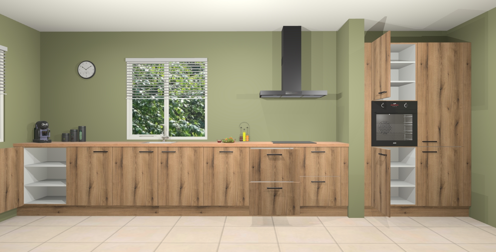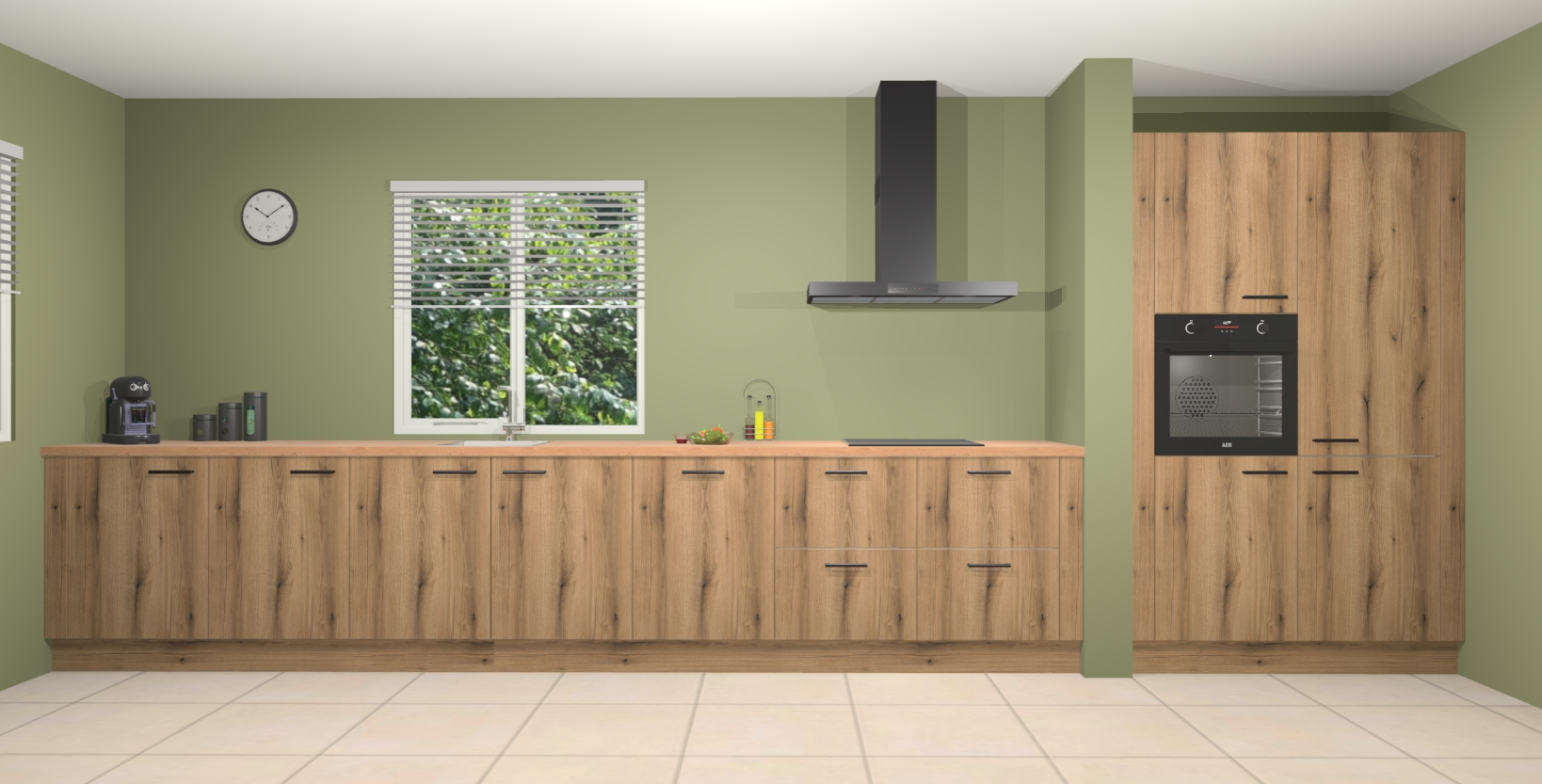 Maak kennis met de Goud eiken keuken Elzas - de perfecte aanvulling voor uw moderne keuken! Ervaar tijdloos design, elegantie en een chique uitstraling met onze handgrepen, soft-close deuren en veel opbergruimte. Dit alles wordt aangeboden tegen een vaste lage prijs voor ongeëvenaarde Duitse keukenkwaliteit!
