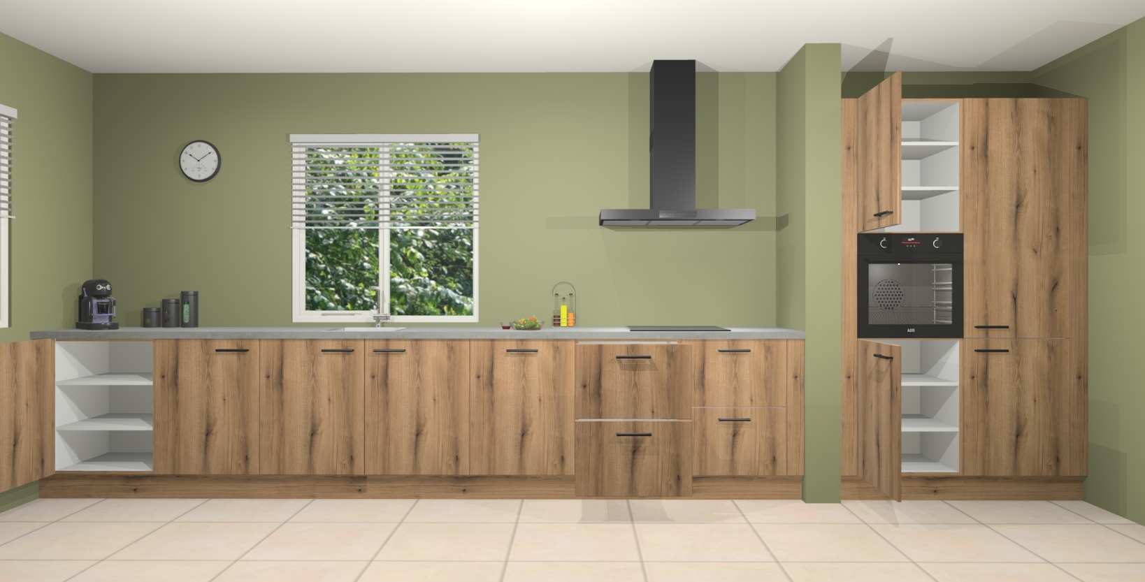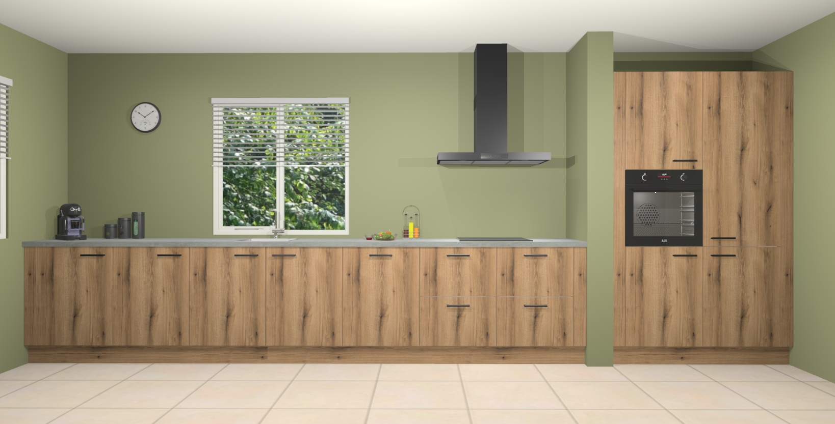 Maak kennis met de Goud eiken keuken Elzas - de perfecte aanvulling voor uw moderne keuken! Ervaar tijdloos design, elegantie en een chique uitstraling met onze handgrepen, soft-close deuren en veel opbergruimte. Dit alles wordt aangeboden tegen een vaste lage prijs voor ongeëvenaarde Duitse keukenkwaliteit!