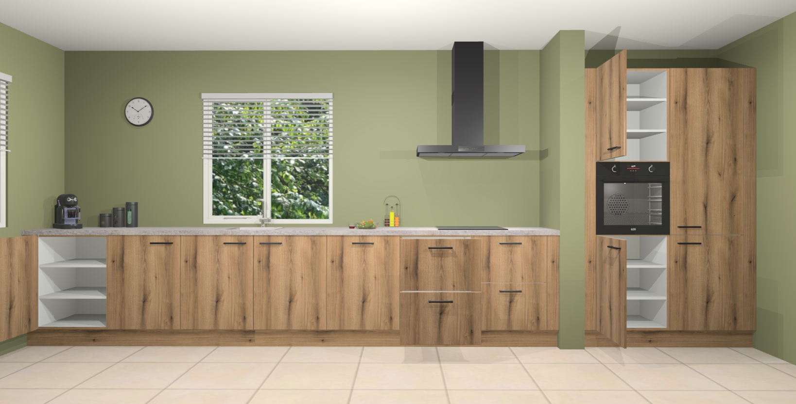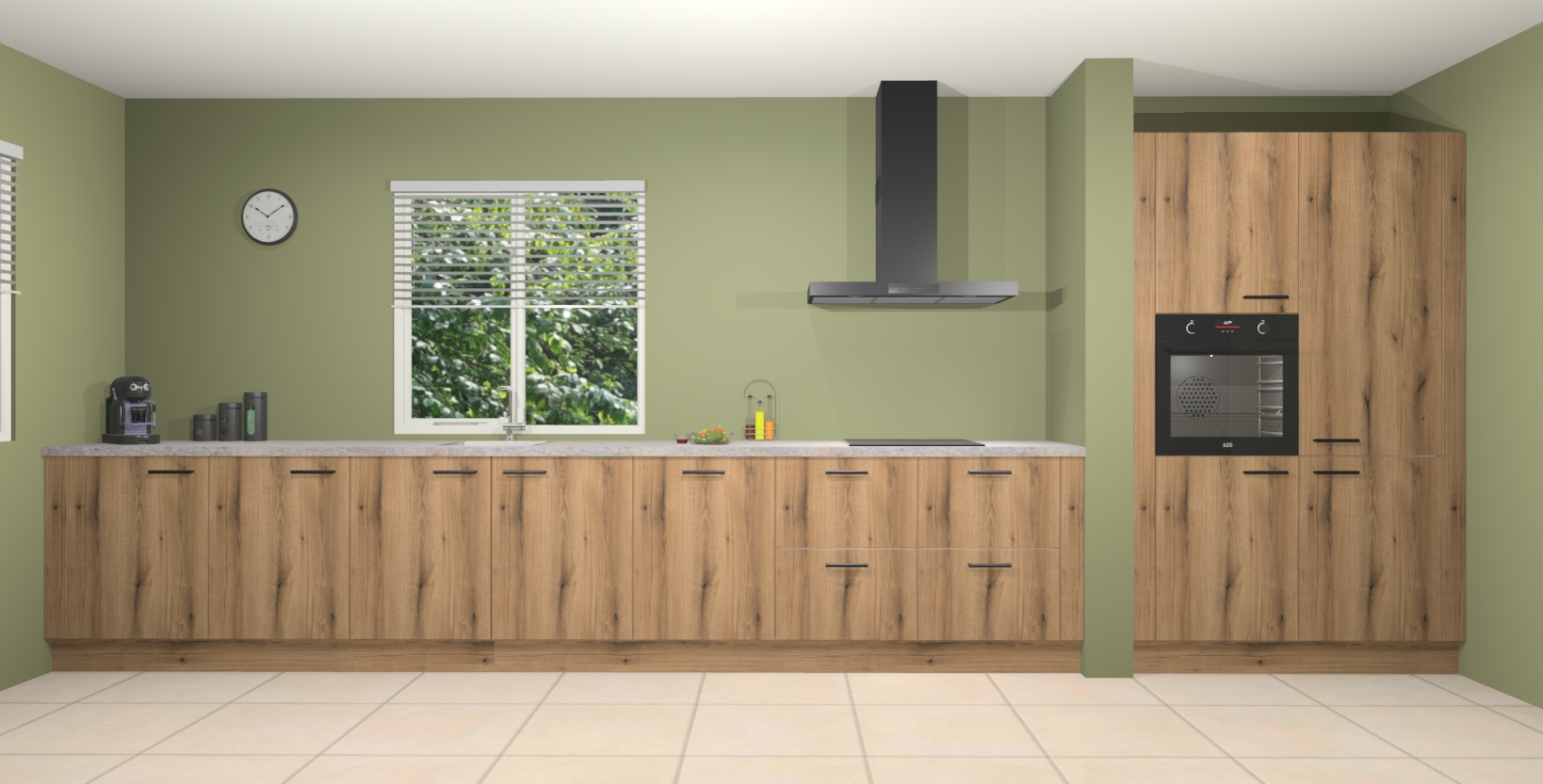 Maak kennis met de Goud eiken keuken Elzas - de perfecte aanvulling voor uw moderne keuken! Ervaar tijdloos design, elegantie en een chique uitstraling met onze handgrepen, soft-close deuren en veel opbergruimte. Dit alles wordt aangeboden tegen een vaste lage prijs voor ongeëvenaarde Duitse keukenkwaliteit!