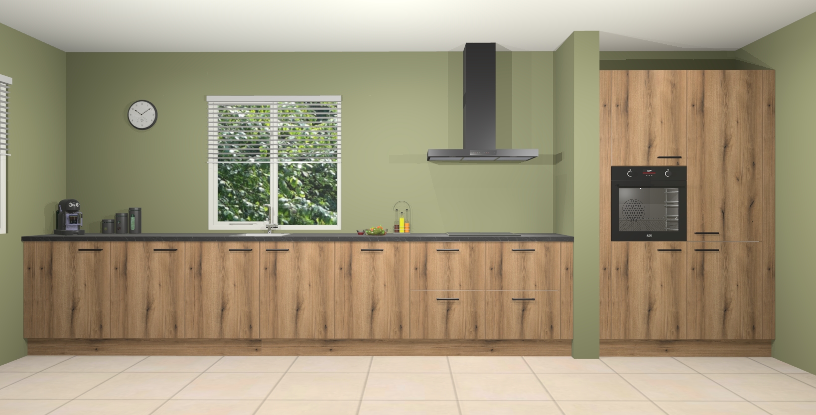 Maak kennis met de Goud eiken keuken Elzas - de perfecte aanvulling voor uw moderne keuken! Ervaar tijdloos design, elegantie en een chique uitstraling met onze handgrepen, soft-close deuren en veel opbergruimte. Dit alles wordt aangeboden tegen een vaste lage prijs voor ongeëvenaarde Duitse keukenkwaliteit!