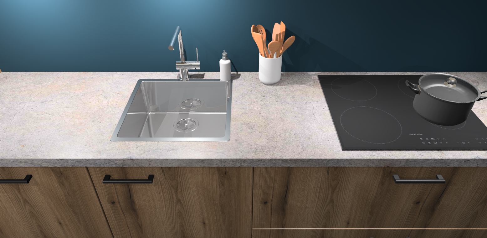 - Uitsparing van kookplaat, spoelbak en kraan dient u zelf te verzorgen.