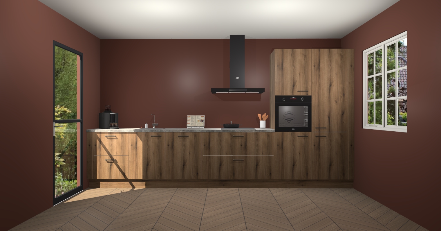 De Goud Eiken keuken Leuven is de perfecte mix van modern en tijdloos design. Met zijn prachtige glazen deuren op de bovenkastjes voegt hij echt iets speciaals en unieks toe aan elke keuken. En met vijf ingebouwde apparaten inbegrepen - een oven, inductiekookplaat, afzuigkap, vaatwasser en koelkast - kunt u deze keuken echt helemaal van uzelf maken! U kunt na bestelling ook upgraden naar AEG voor een nog hogere kwaliteitservaring.
