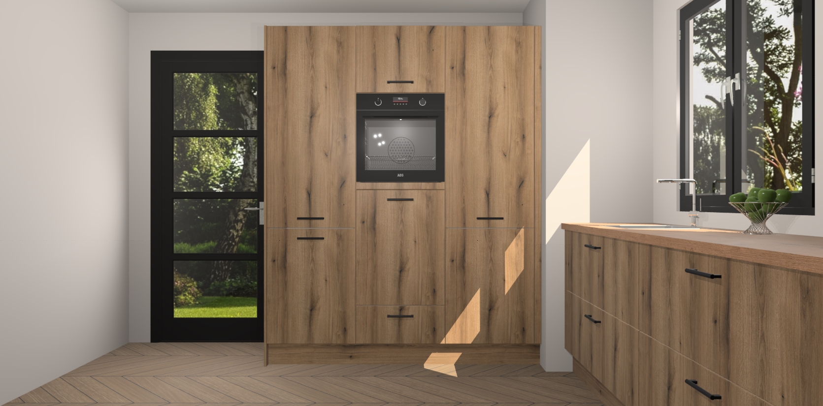 De softclose deuren openen en sluiten is ook heel eenvoudig - geniet van een moeiteloze keukenervaring, zelfs als er kinderen rondlopen. Voor extra gemak bij het plaatsen van uw bestelling bieden we ook een upgrade naar een kookplaat met geïntegreerde afzuiging.