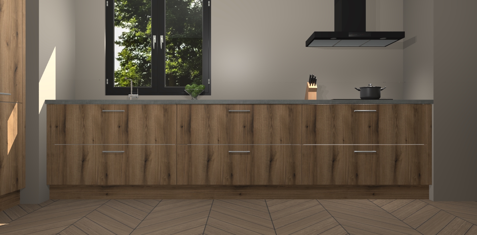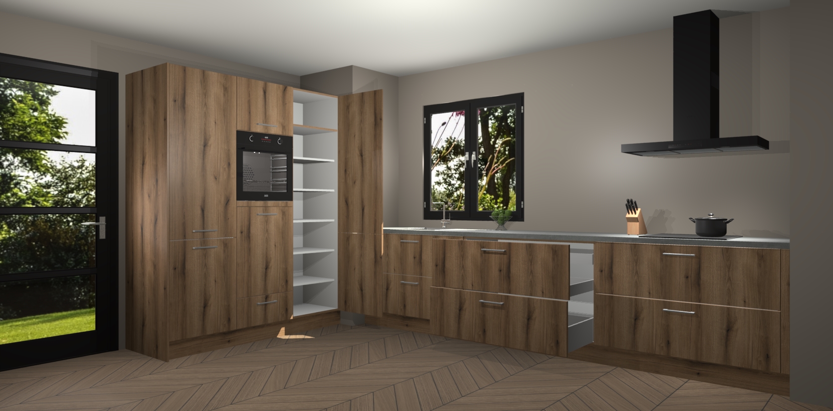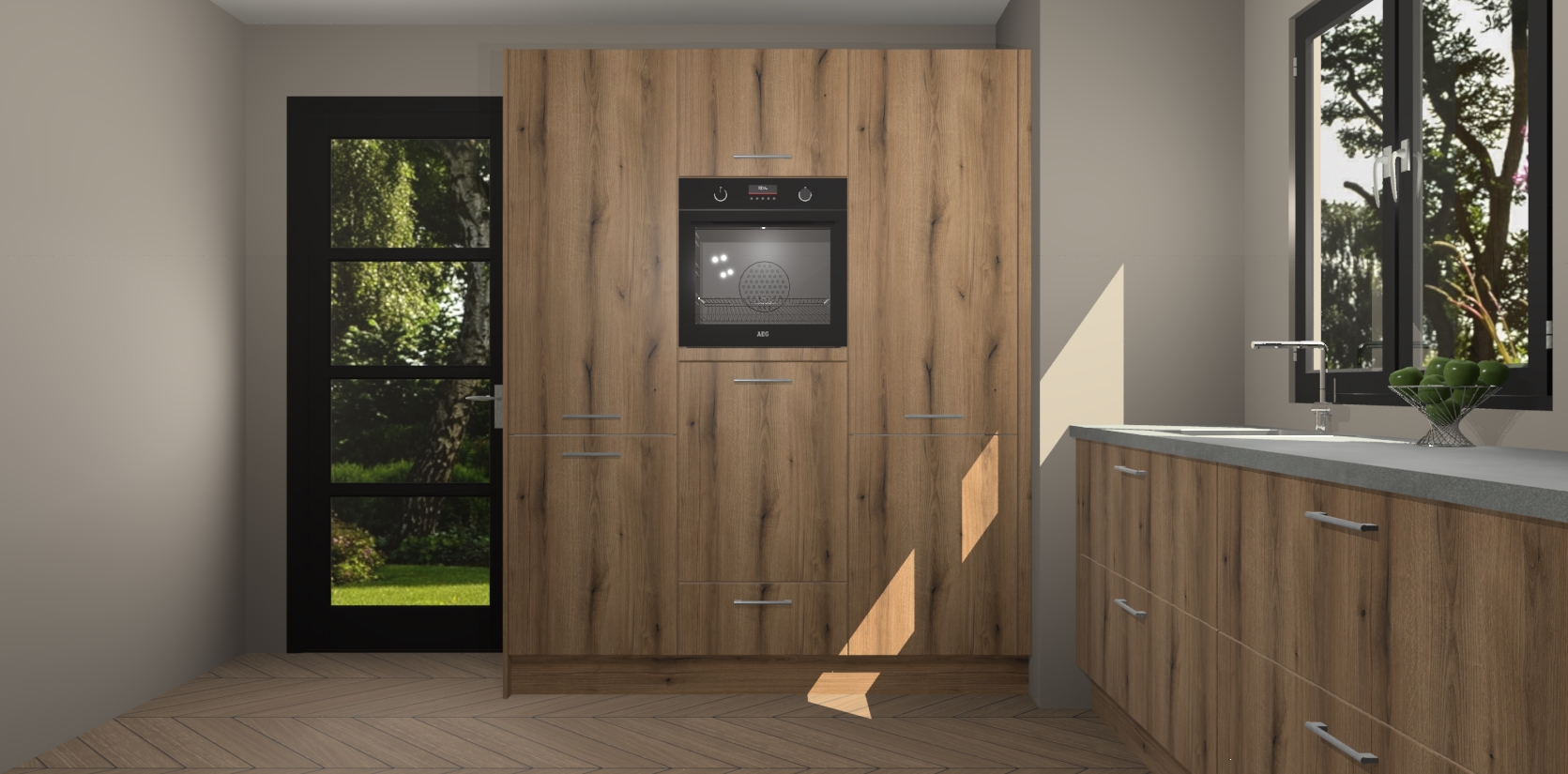 De softclose deuren openen en sluiten is ook heel eenvoudig - geniet van een moeiteloze keukenervaring, zelfs als er kinderen rondlopen. Voor extra gemak bij het plaatsen van uw bestelling bieden we ook een upgrade naar een kookplaat met geïntegreerde afzuiging.