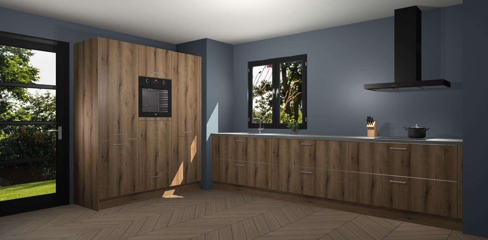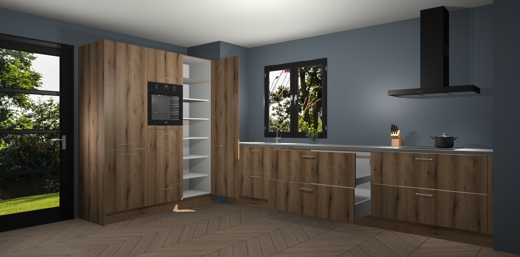 De softclose deuren openen en sluiten is ook heel eenvoudig - geniet van een moeiteloze keukenervaring, zelfs als er kinderen rondlopen. Voor extra gemak bij het plaatsen van uw bestelling bieden we ook een upgrade naar een kookplaat met geïntegreerde afzuiging.