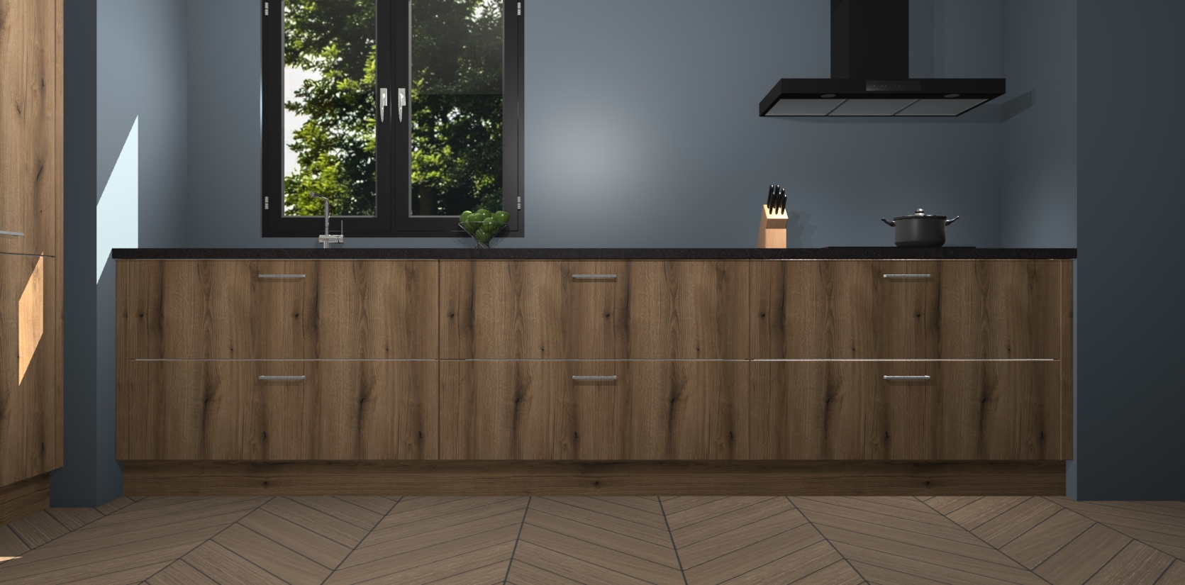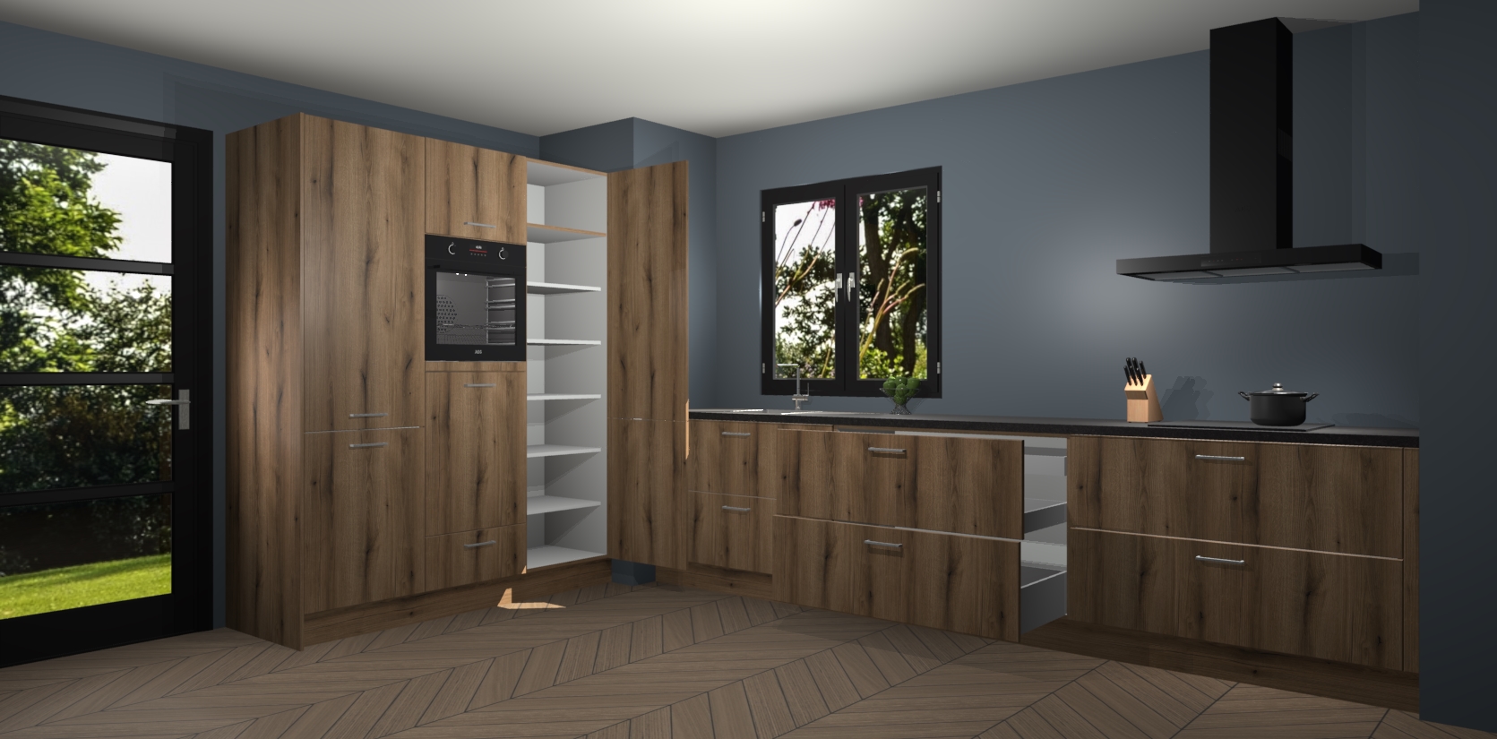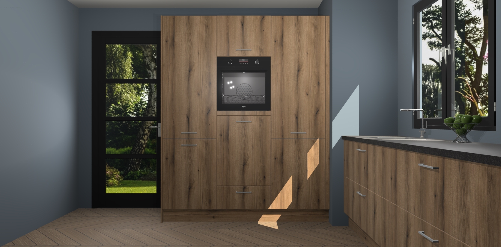 De softclose deuren openen en sluiten is ook heel eenvoudig - geniet van een moeiteloze keukenervaring, zelfs als er kinderen rondlopen. Voor extra gemak bij het plaatsen van uw bestelling bieden we ook een upgrade naar een kookplaat met geïntegreerde afzuiging.