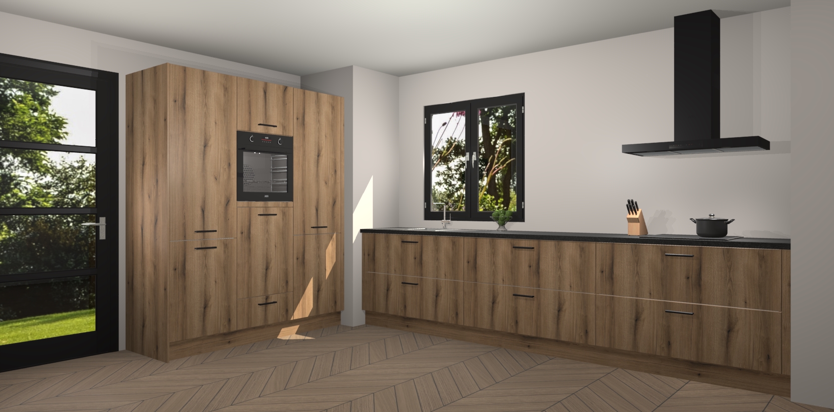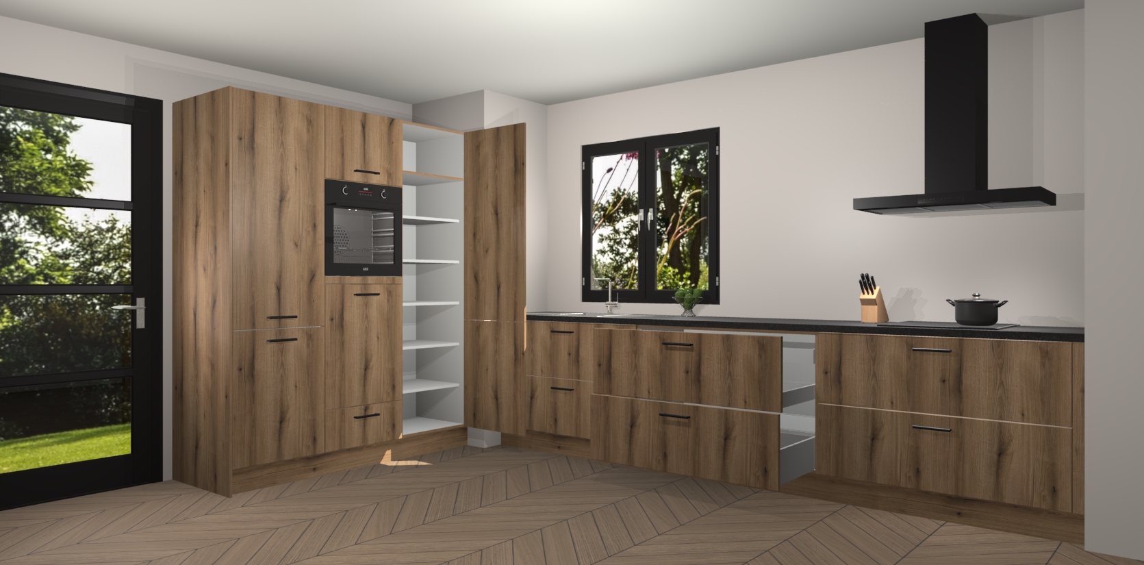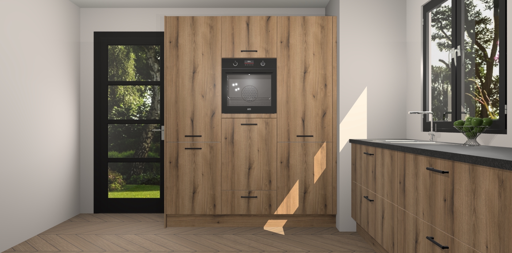 De softclose deuren openen en sluiten is ook heel eenvoudig - geniet van een moeiteloze keukenervaring, zelfs als er kinderen rondlopen. Voor extra gemak bij het plaatsen van uw bestelling bieden we ook een upgrade naar een kookplaat met geïntegreerde afzuiging.