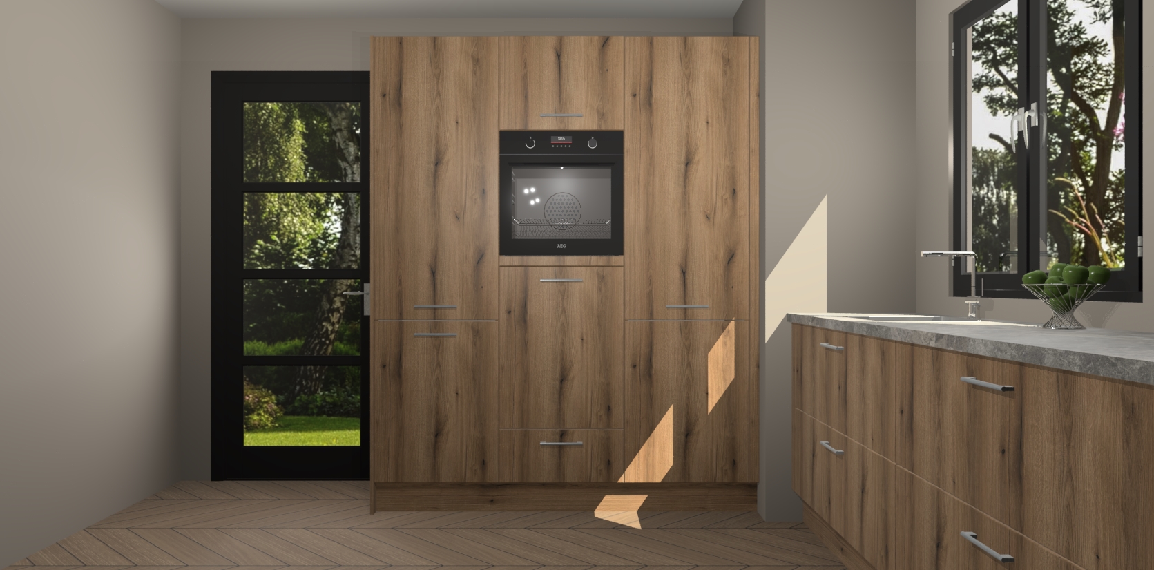 De softclose deuren openen en sluiten is ook heel eenvoudig - geniet van een moeiteloze keukenervaring, zelfs als er kinderen rondlopen. Voor extra gemak bij het plaatsen van uw bestelling bieden we ook een upgrade naar een kookplaat met geïntegreerde afzuiging.