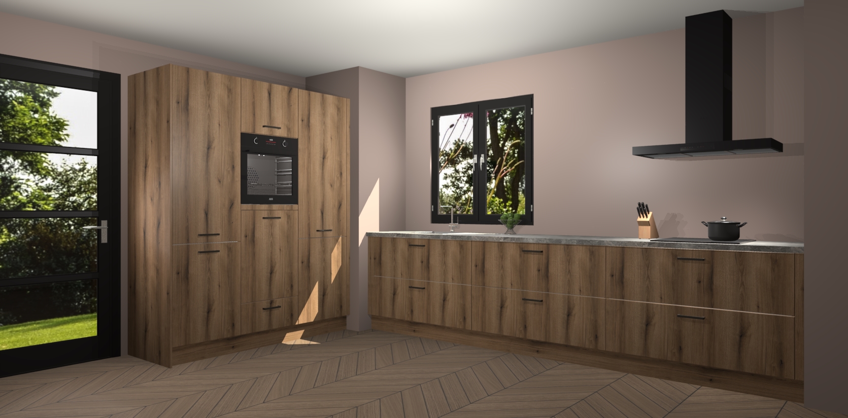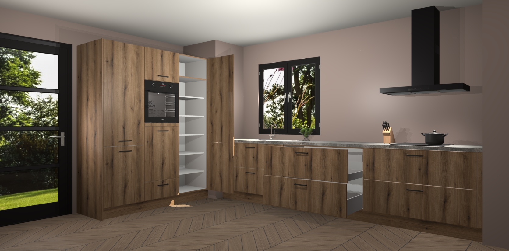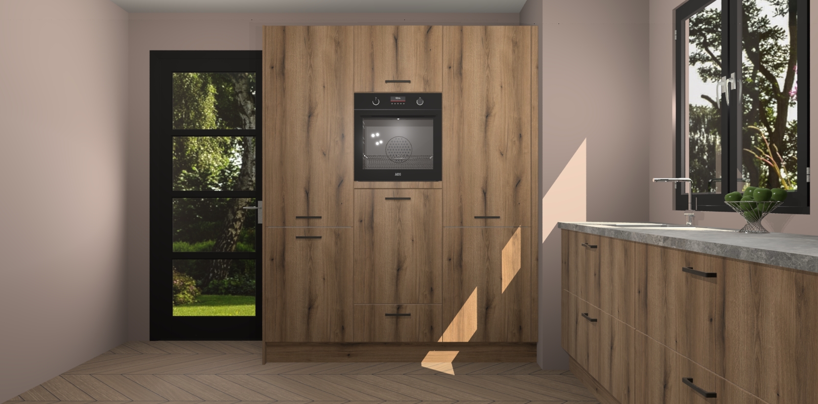 De softclose deuren openen en sluiten is ook heel eenvoudig - geniet van een moeiteloze keukenervaring, zelfs als er kinderen rondlopen. Voor extra gemak bij het plaatsen van uw bestelling bieden we ook een upgrade naar een kookplaat met geïntegreerde afzuiging.