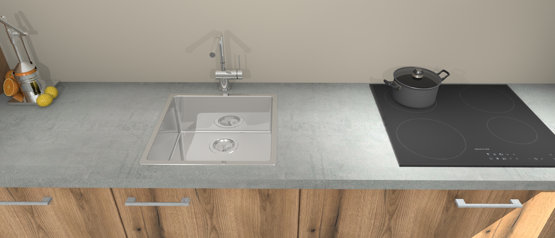 • Uitsparing van kookplaat, spoelbak en kraan dient u zelf te verzorgen.