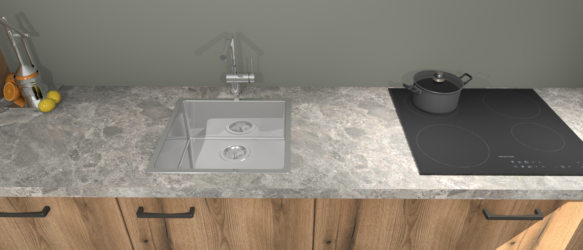 - Uitsparing van kookplaat, spoelbak en kraan dient u zelf te verzorgen.