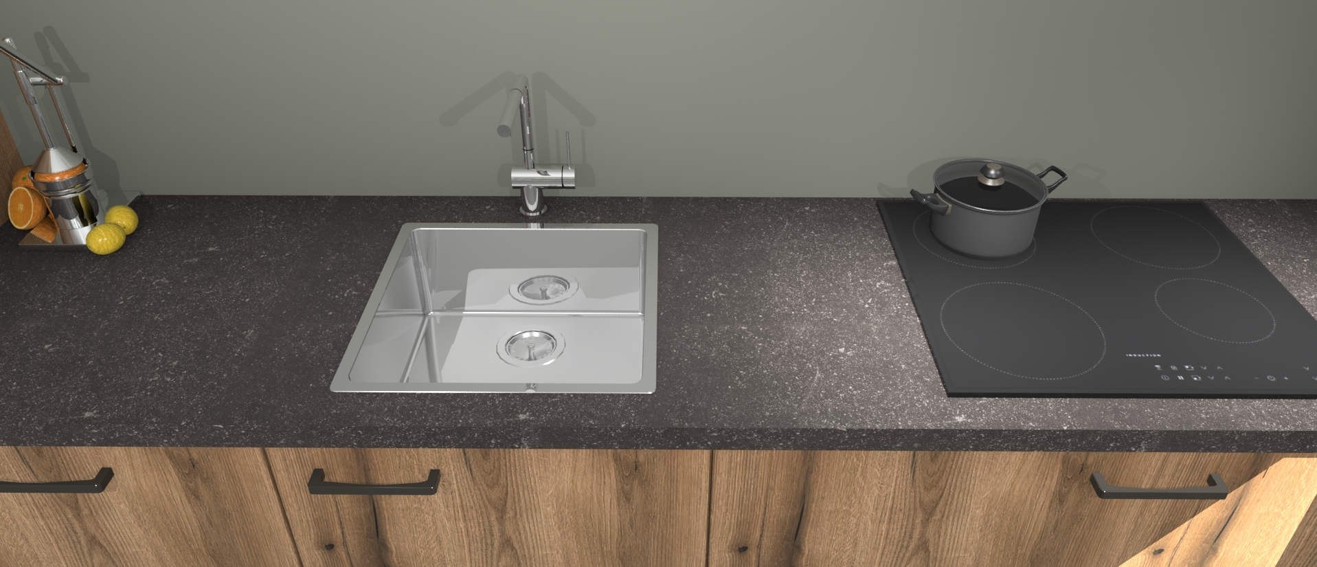 - Uitsparing van kookplaat, spoelbak en kraan dient u zelf te verzorgen.