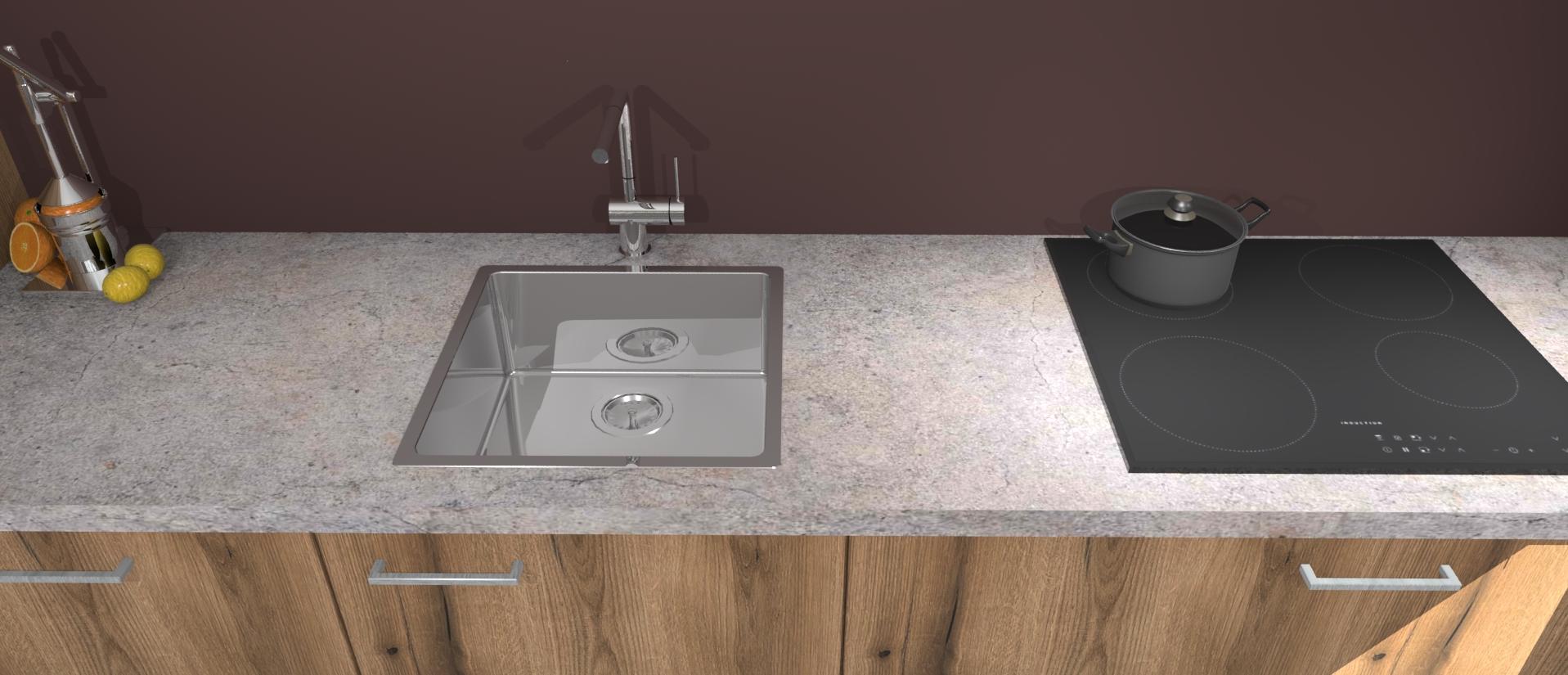 • Uitsparing van kookplaat, spoelbak en kraan dient u zelf te verzorgen.