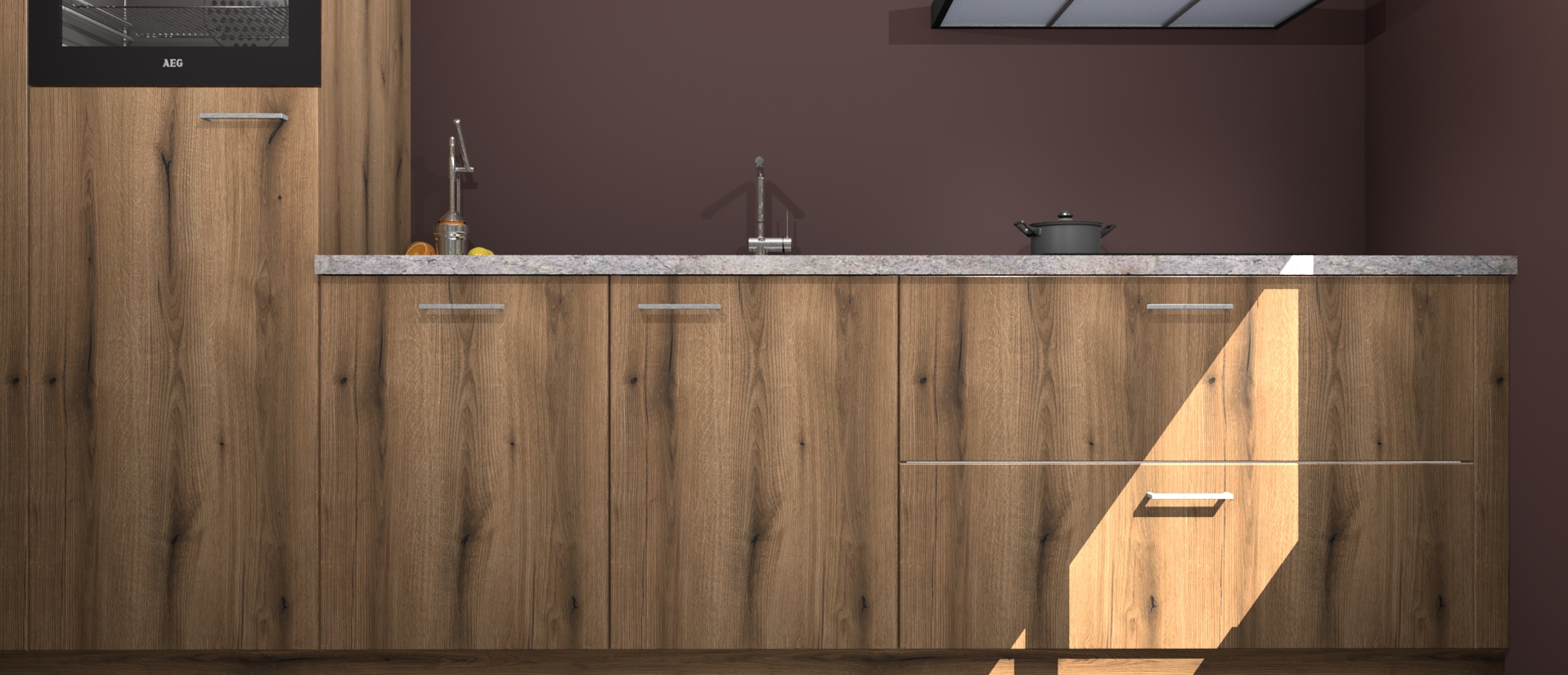 Maak kennis met de gloednieuwe Goud Eiken keuken Tokelau! Met zijn chique, moderne uitstraling is dit product perfect voor iedereen die een warm en toch strak design voor zijn huis wil.