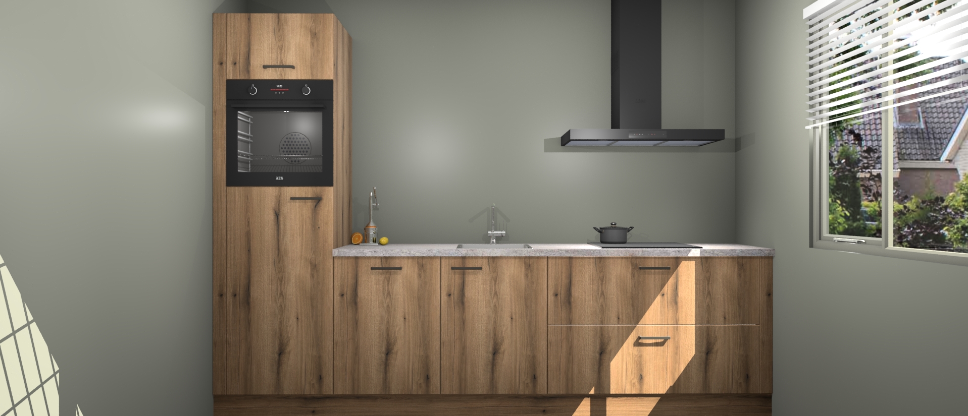 De Goud Eiken keuken Tokelau is gemaakt van de beste materialen op de markt, dus u kunt erop vertrouwen dat hij u niet in de steek zal laten. Bovendien kunt u hem gemakkelijk upgraden naar het AEG-model als u er nog meer uit wilt halen!