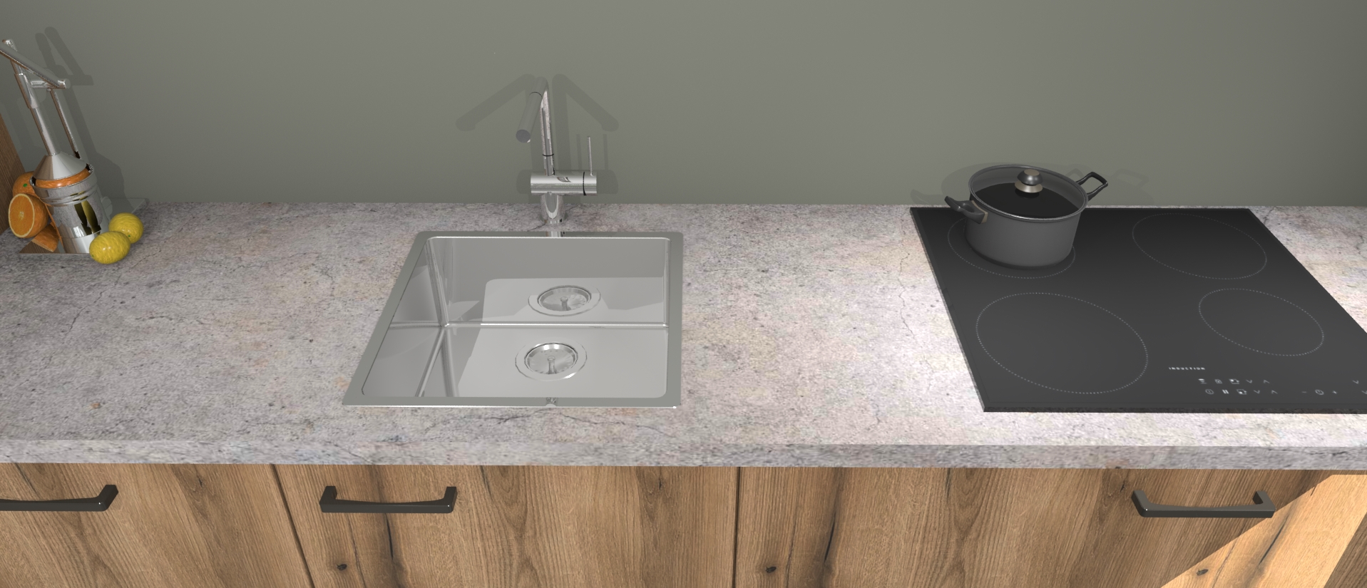 • Uitsparing van kookplaat, spoelbak en kraan dient u zelf te verzorgen.