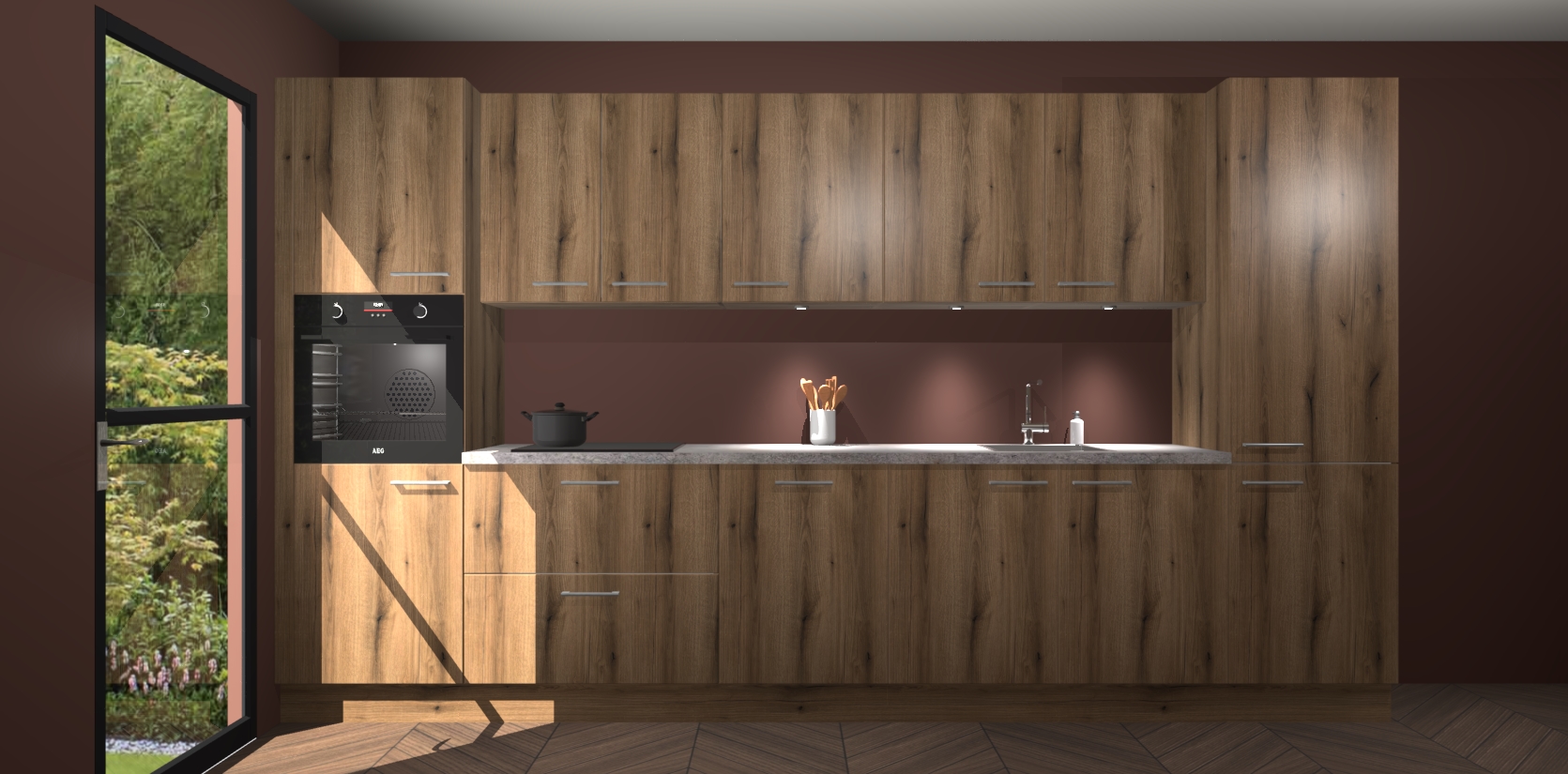 Dit is de perfecte keuken voor wie op zoek is naar een luxueuze stijl zonder zijn portemonnee te legen! Het chique ontwerp van de goud eiken keuken Wels voegt dat vleugje verfijning toe aan elk huis. Het gemak van voorgemonteerde kasten bespaart u talloze uren tijd en energie, zodat u veel sneller dan verwacht kunt beginnen te genieten van uw prachtige nieuwe keuken. Bovendien bedraagt de levertijd slechts 7 weken.